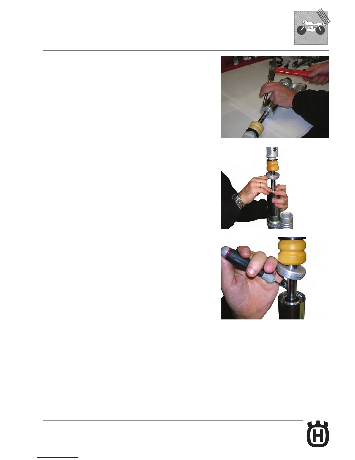 Lay the shock absorber on the working table. Loosen or dig ot the cover (according