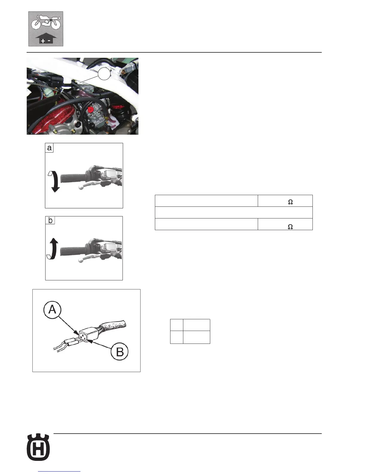 b- throttle control grip in COMPLETELY OPEN position