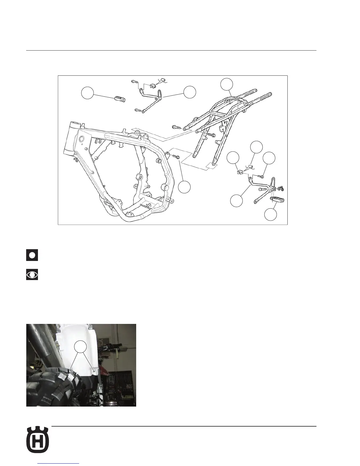 To always have the rear frame (a) fastened in two points, assemble the footrests first on to one side of the motorcycle then on the
