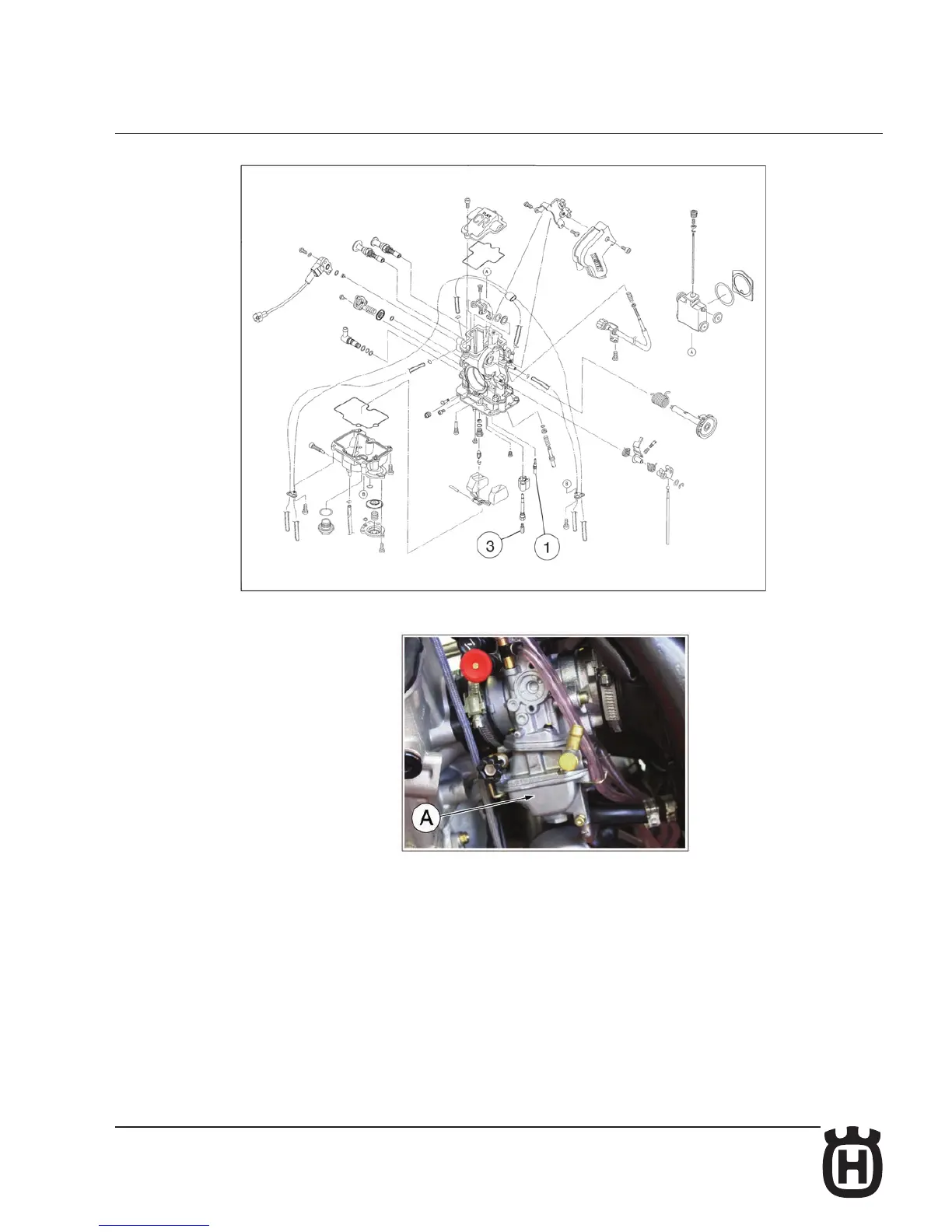 Remove the floater chamber (A). Replace the parts 1 and 3 with the KIT parts Reassemble the carburettor in the reverse order that was