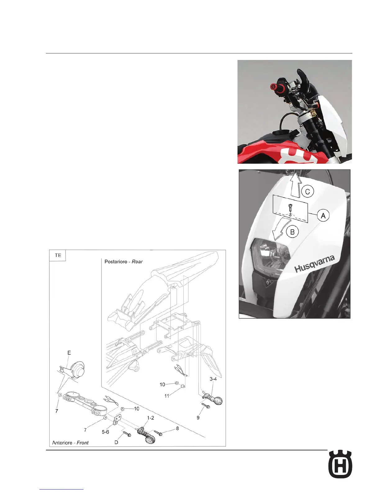 (R.H. side: remember to assemble the horn E between the turn signal plate
