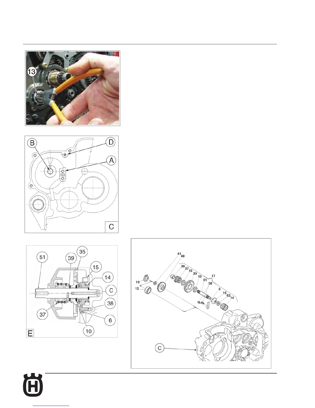 on the R.H. crankcase (C) using the two screws (38) M6x14 (+LOCTITE 243).