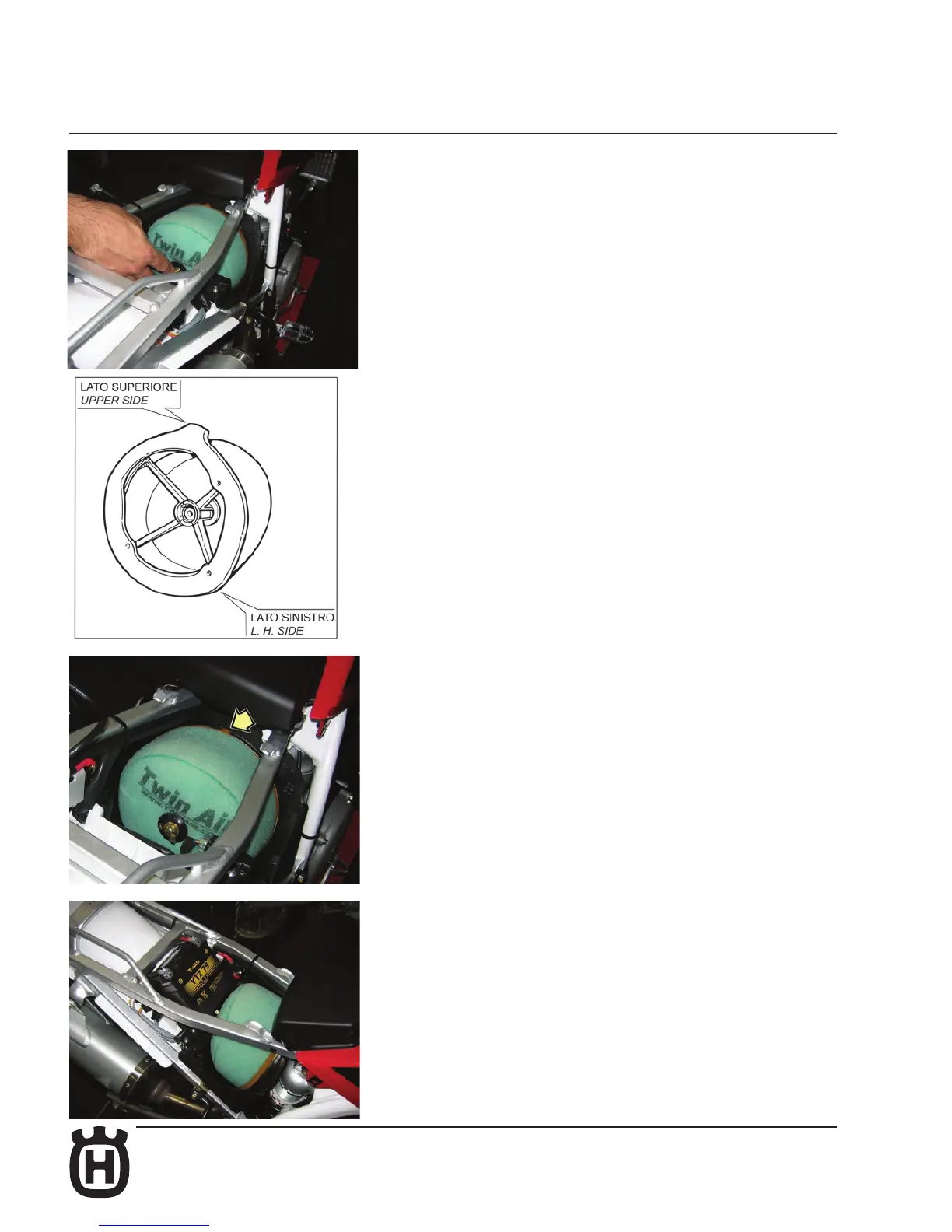 Reassemble the new air filter assy. according with the pictures.