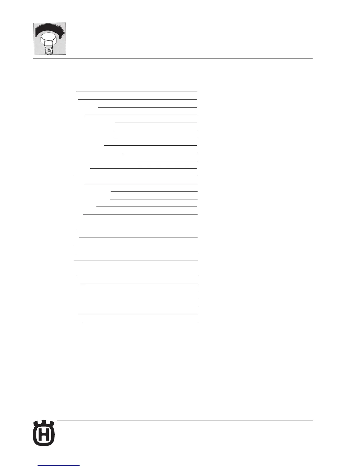 Front number holder lower fastening screw (TC-TXC) M6x1 10,4 Nm 1,05 Kgm 7.7 ft/lb
