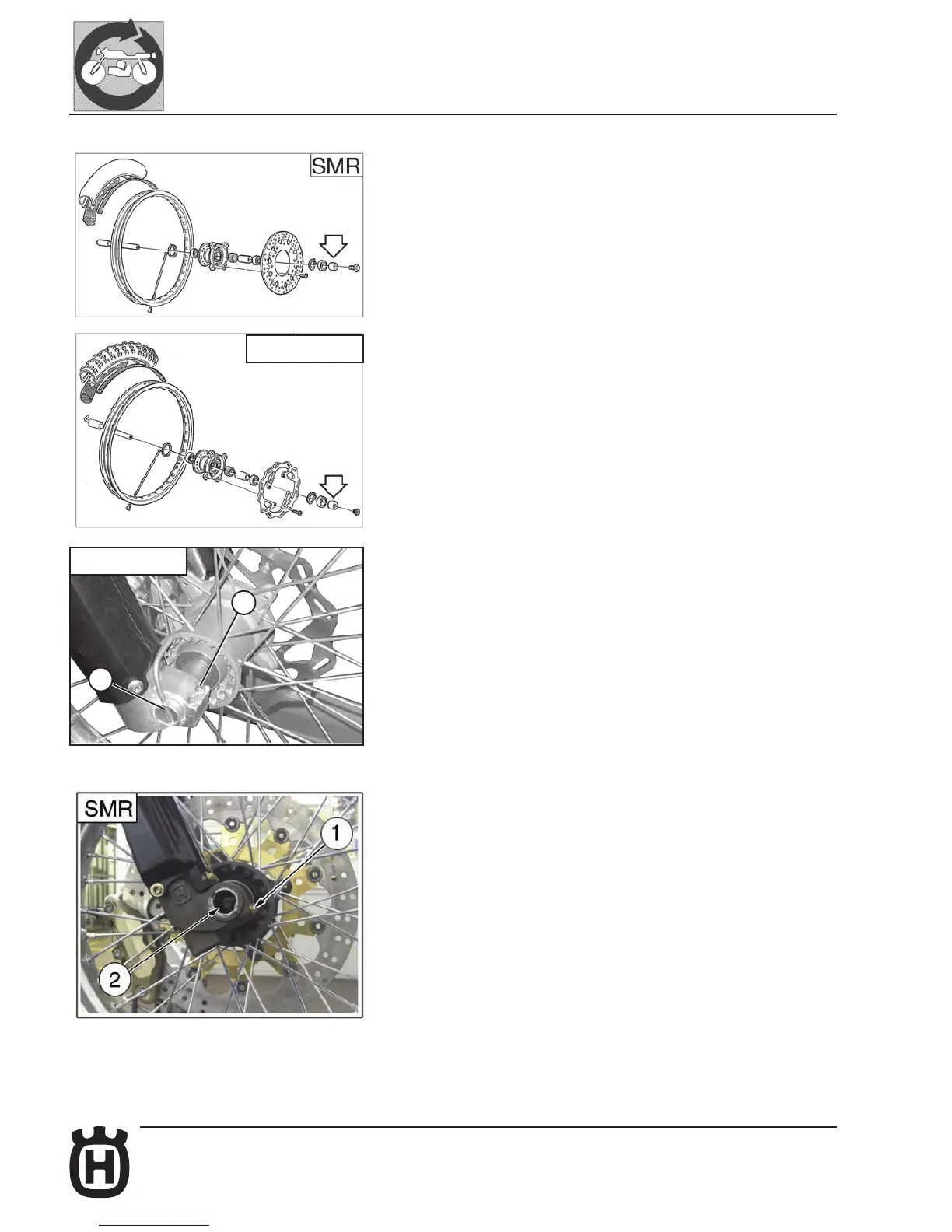 SMR: Fit the wheel between the front fork legs.