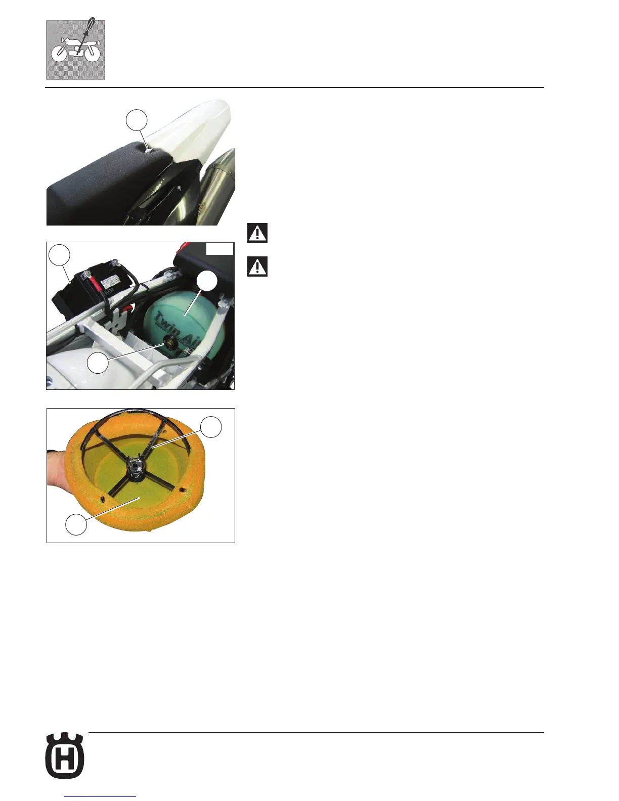 To gain access to the air filter, lift a little the electronic power unit (2). Remove