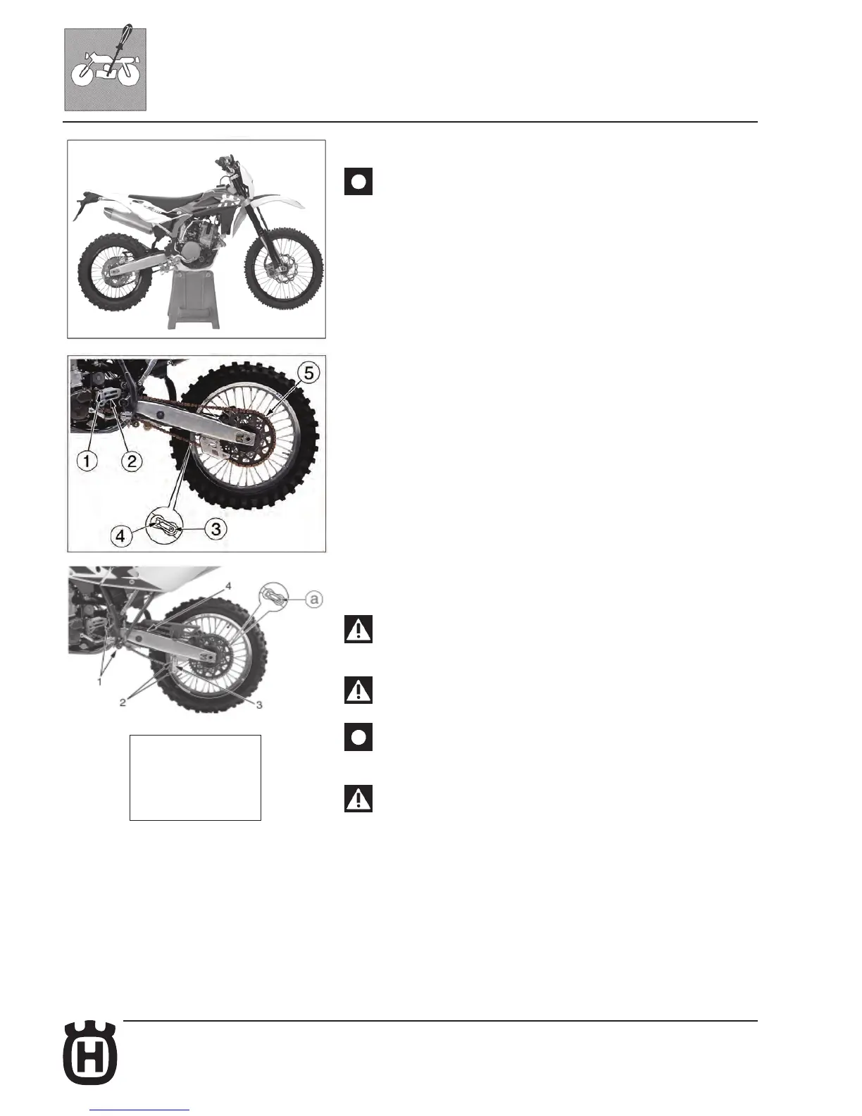 - set a stand or a block under the engine and see that the rear wheel is lifted from
