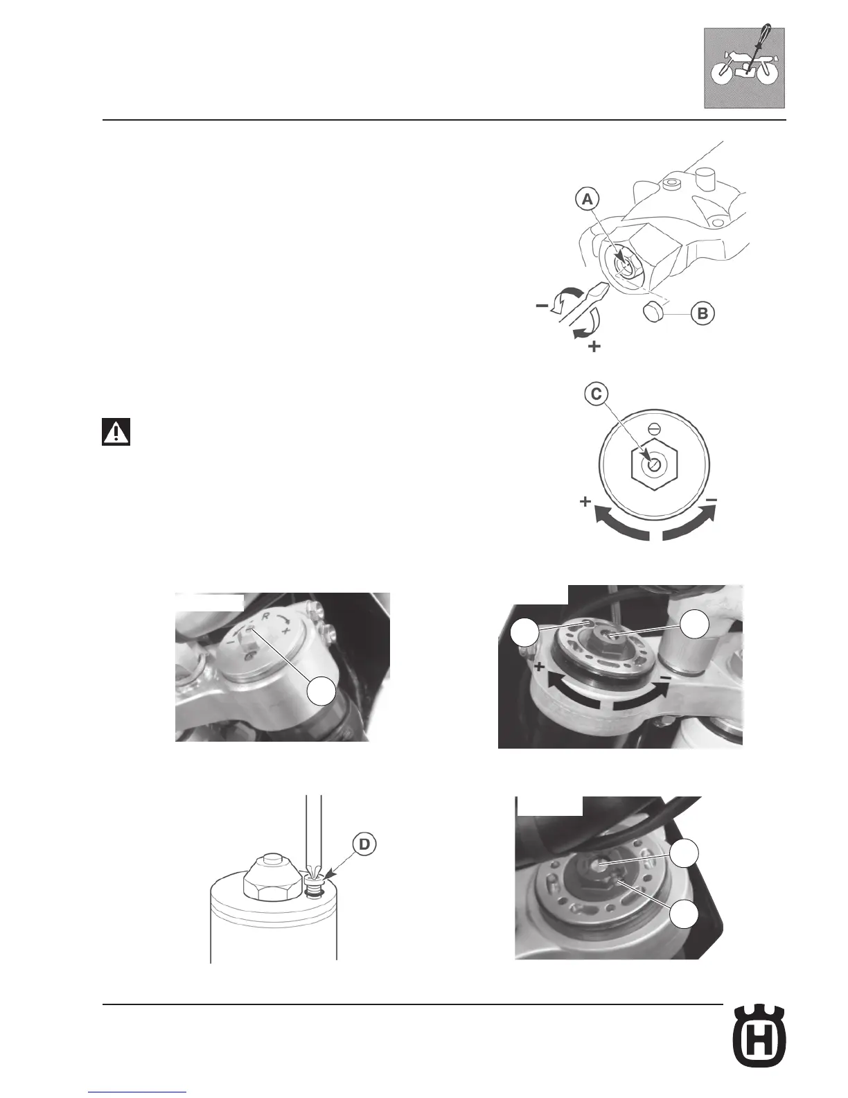 TE-SMR: Set the motorcycle on its central stand, fully extend the fork and loosen