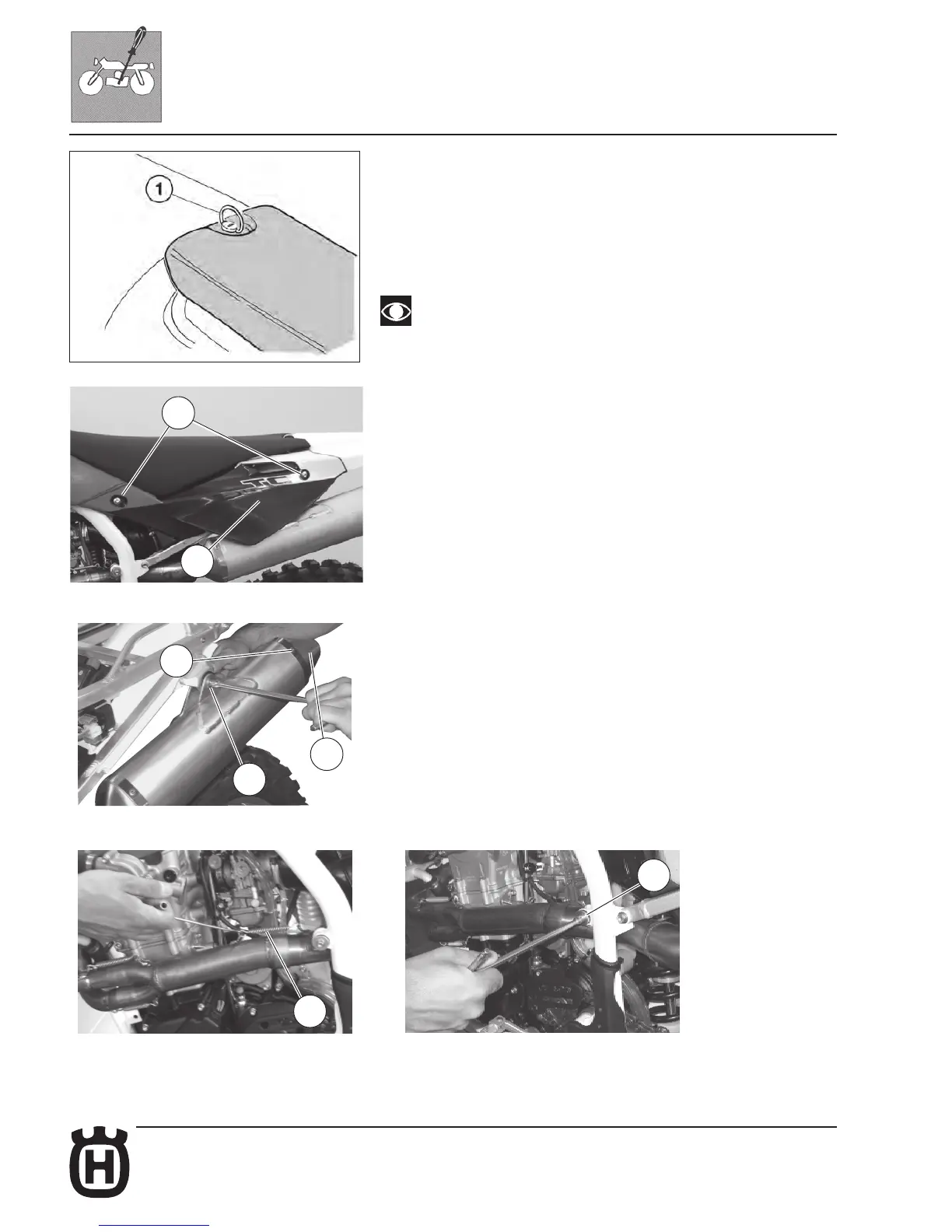 and L.H. side panel (3). Using an 8 mm T-shaped spanner on the outside and a