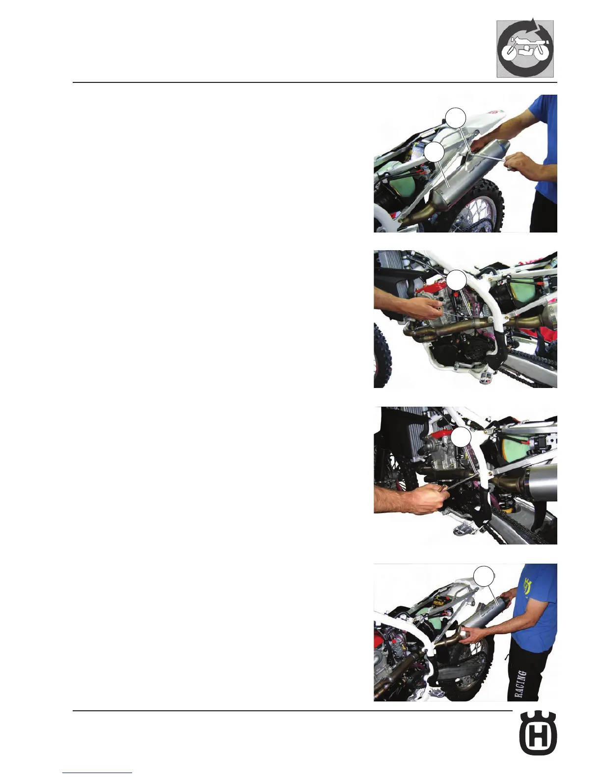 T-shaped spanner on the inside, remove the locking screw (1) of the muffler (4).