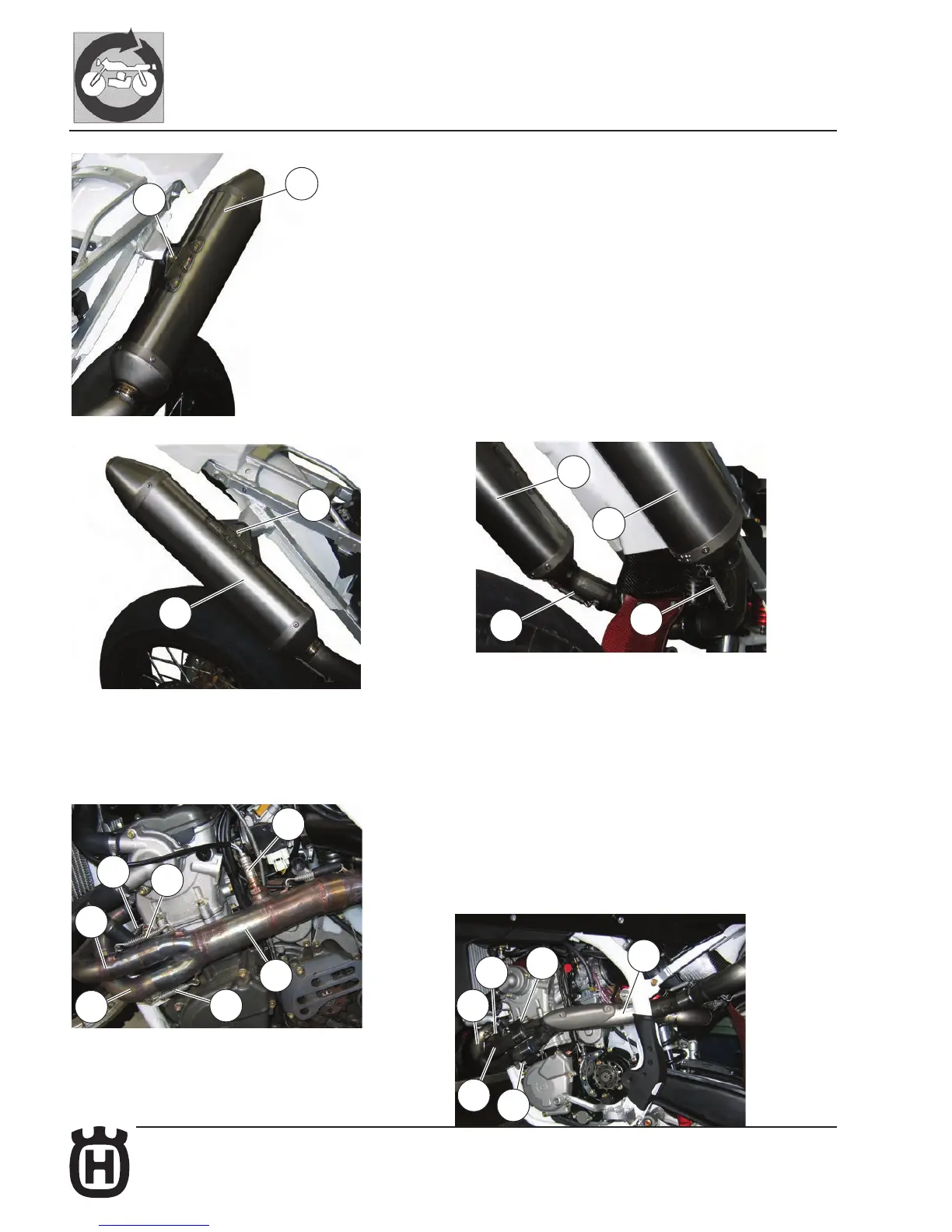 the fastening screw (1) of silencers (3) and (4). Remove the spring (2) and extract