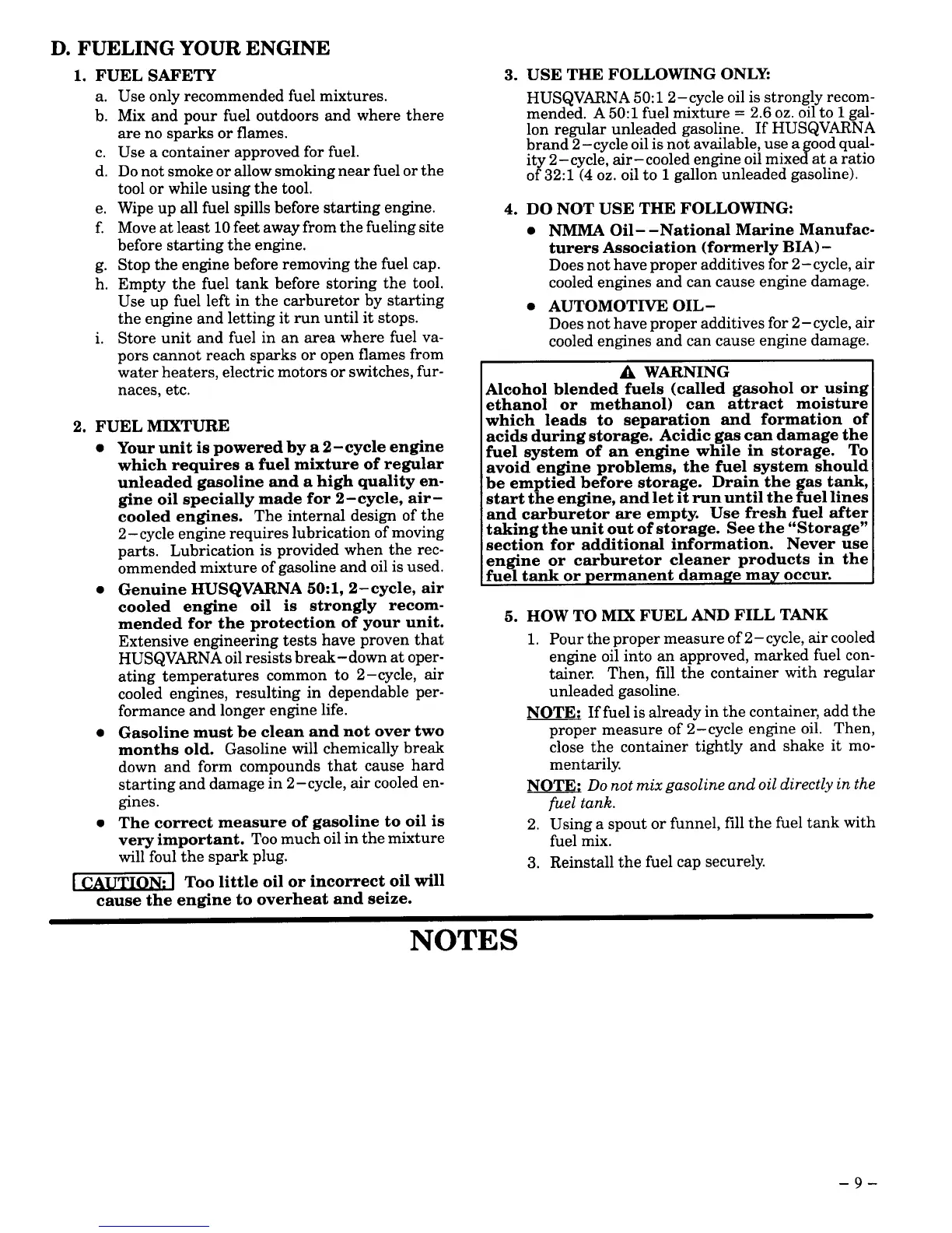 ommended mixture of gasolineand oil isused.