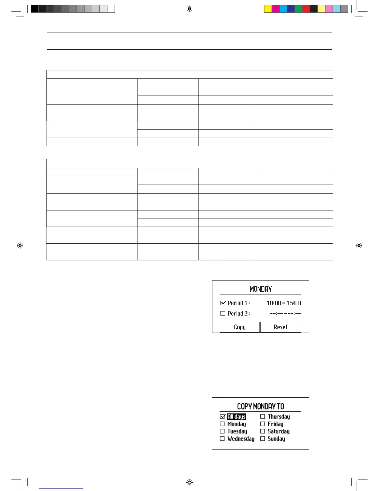 Up to two time intervals per day can be entered. To enter