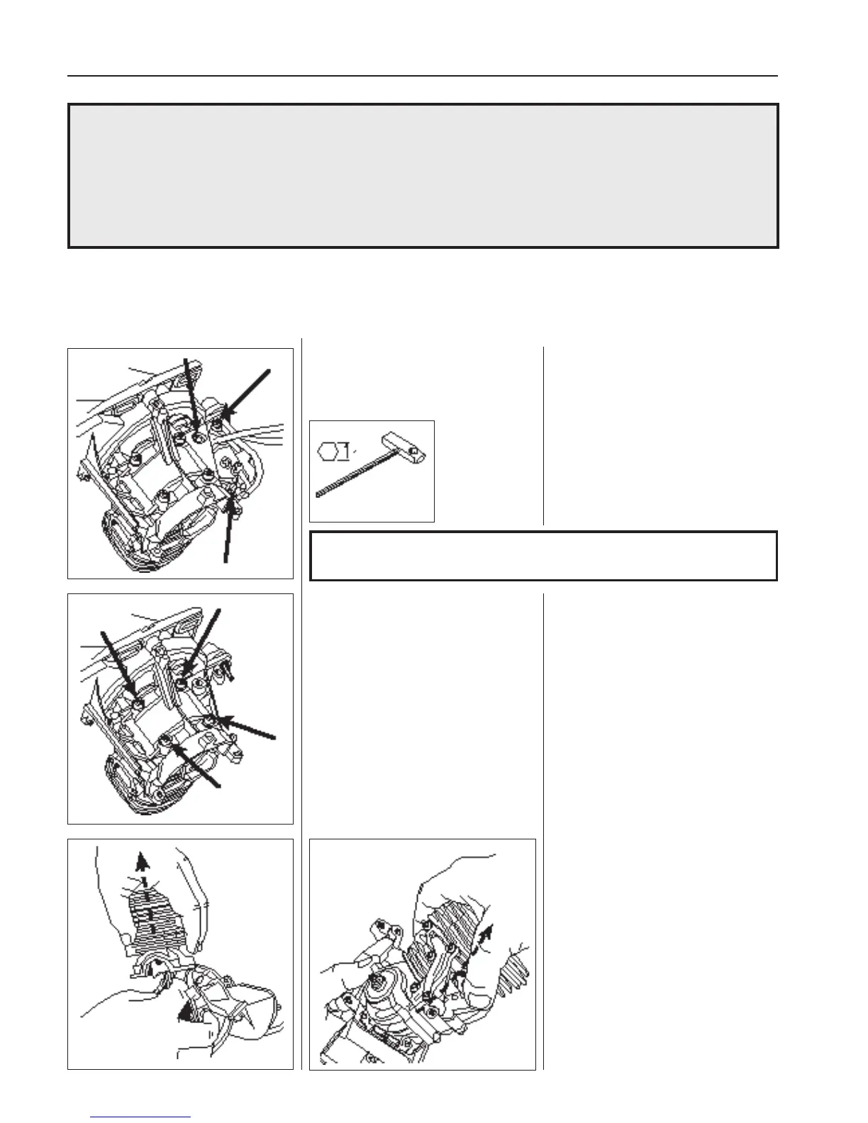 Remove the bolts holding the cylinder. Remove the 4 bolts holding the cylinder