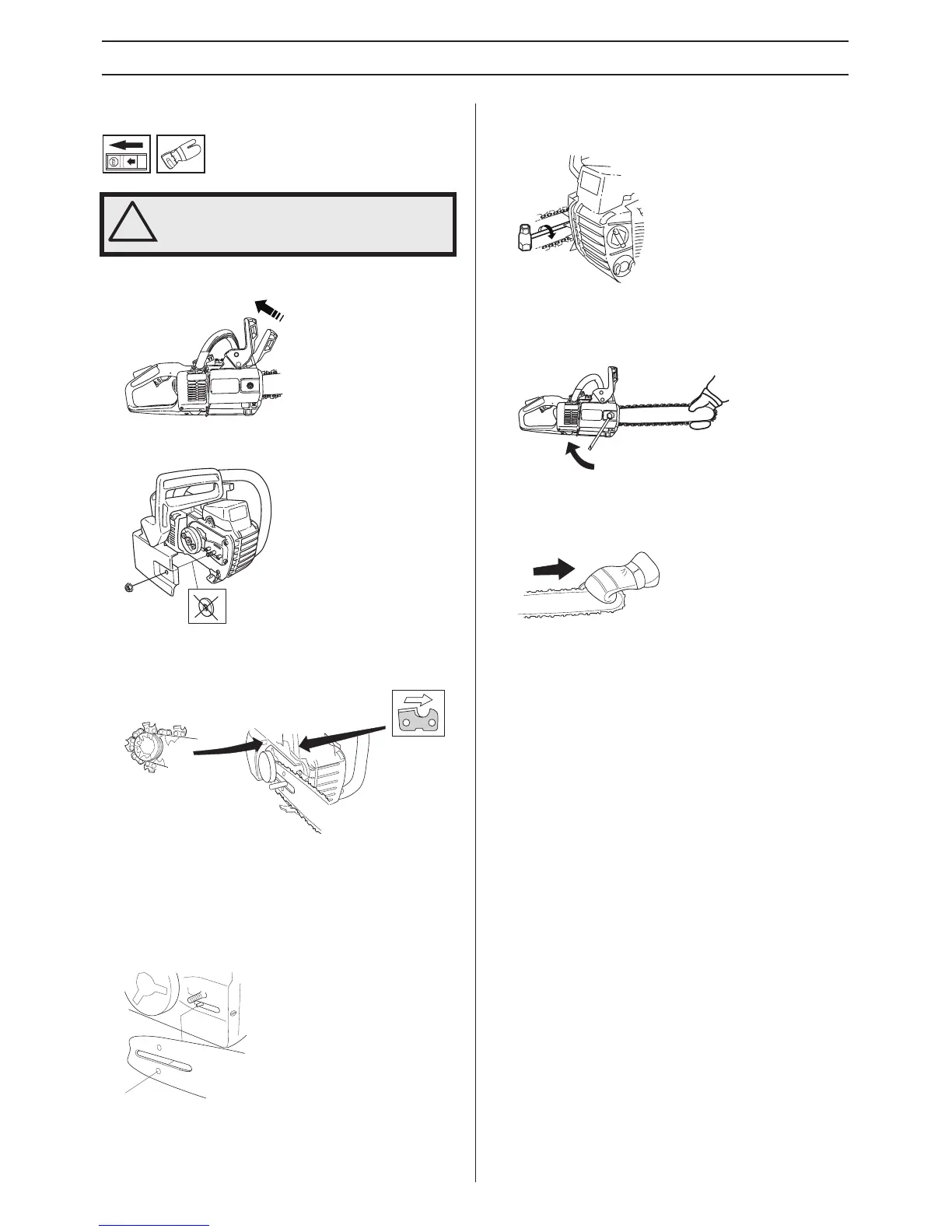 Check that the chain brake is in disengaged position by