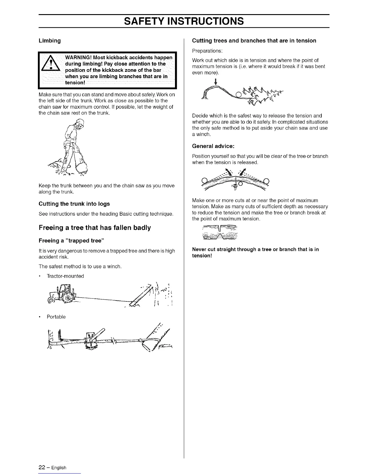 Cutting trees and branches that are in tension