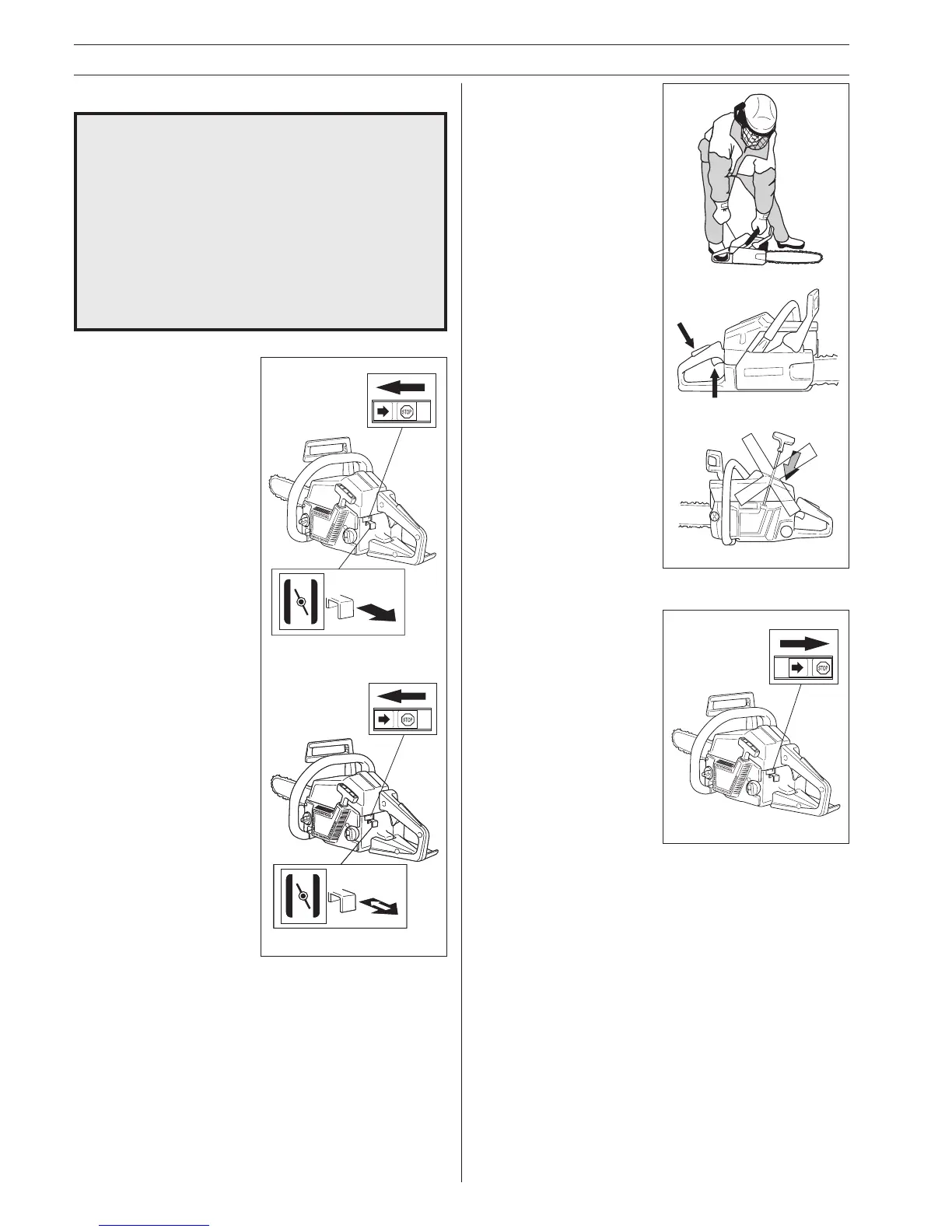 • Place the saw on clear ground and make sure that the