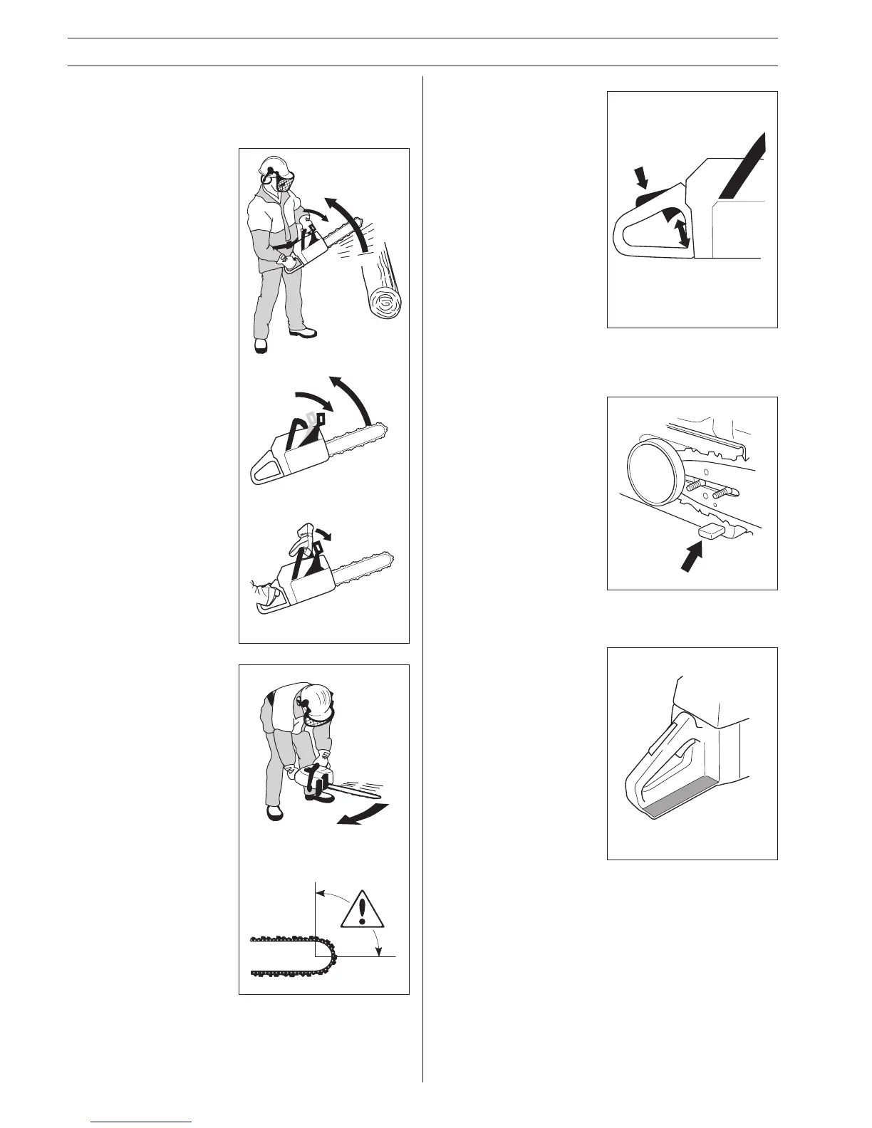 position of the chain saw in relation to the object that the