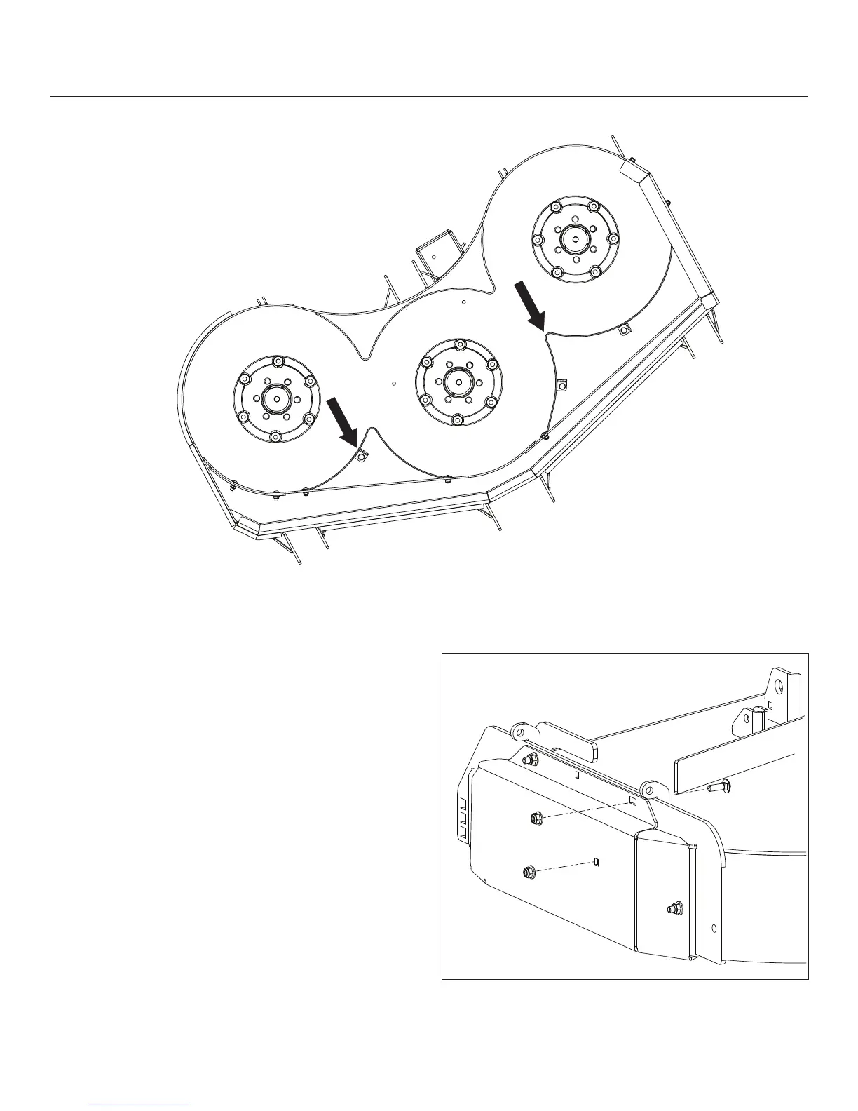 Fasten the mulch cap to the deck and bafe. 6.