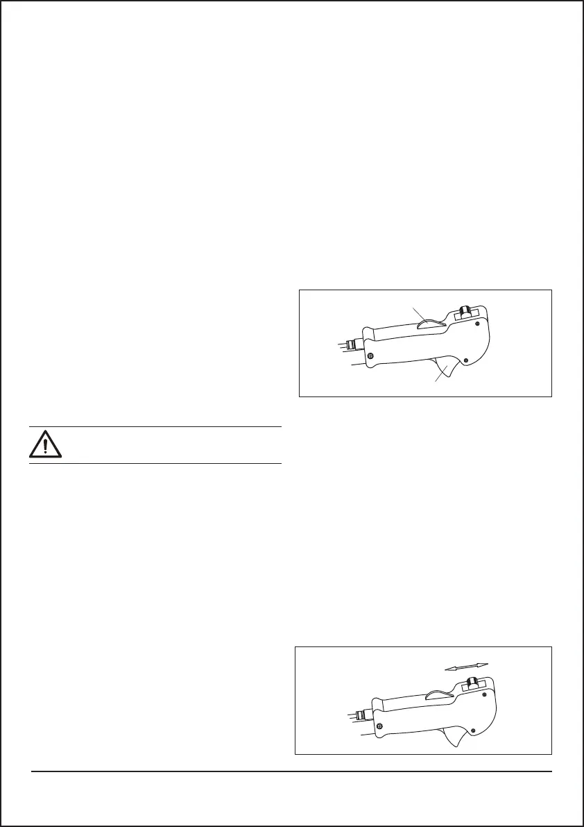 2. Empurre o bloqueio do gatilho do acelerador (A)