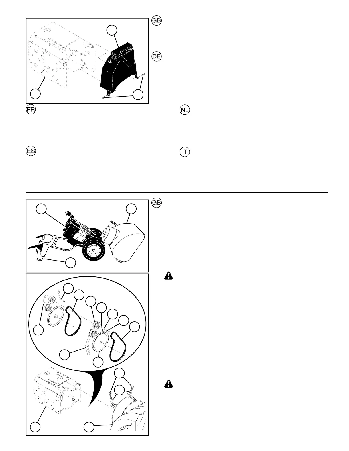 WARNING: Belt replacement requires separation of the snow