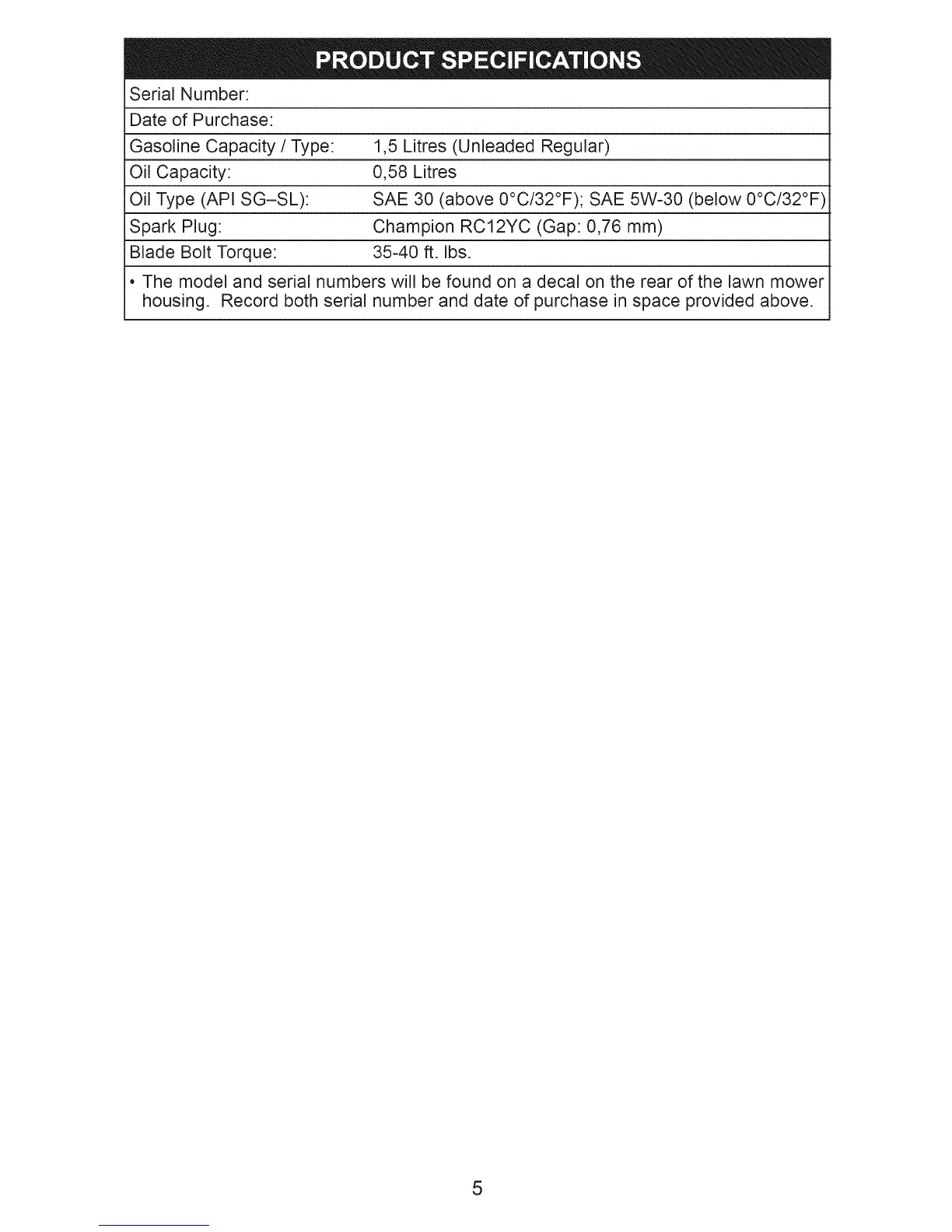 • The model and serial numbers wil! be found on a decal on the rear of the lawn mower