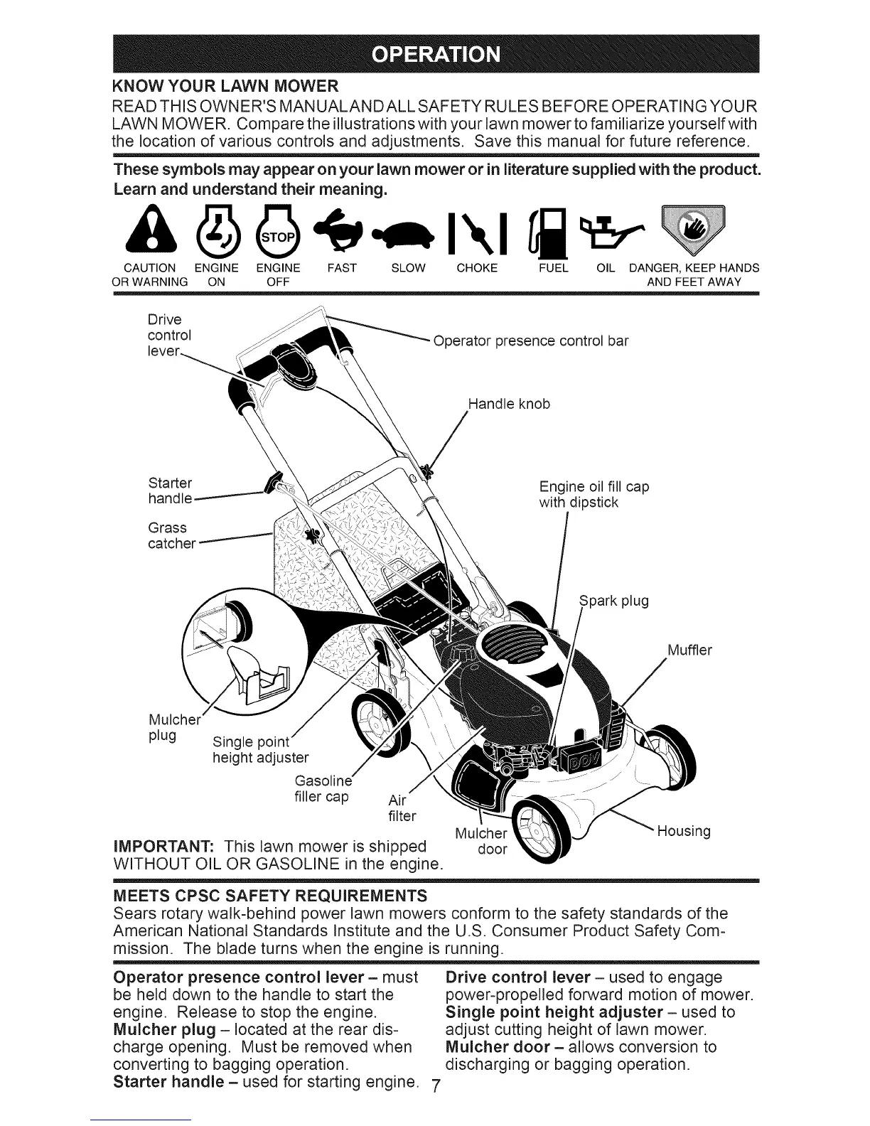LAWNMOWER.Comparetheillustrationswithyourlawnmowertofamiliarizeyourselfwith