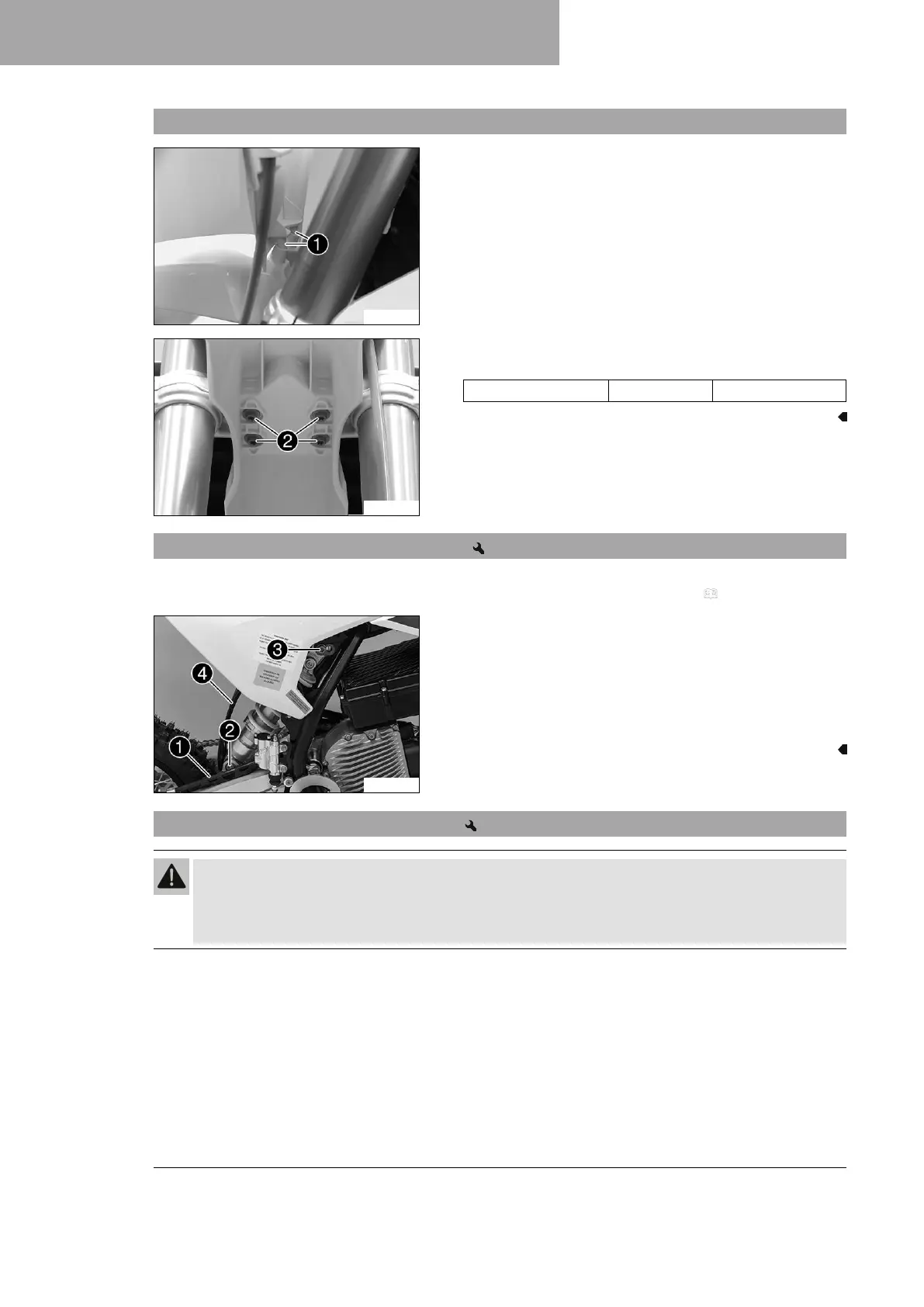 – Raise the motorcycle with a lift stand. ( p. 45)