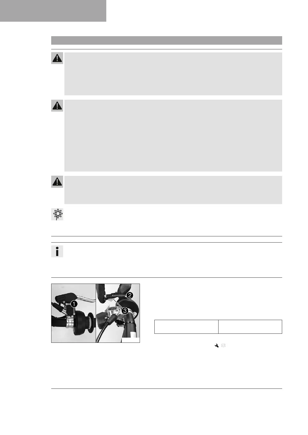– Check the brake system and do not continue riding until the problem is eliminated. (Your authorized