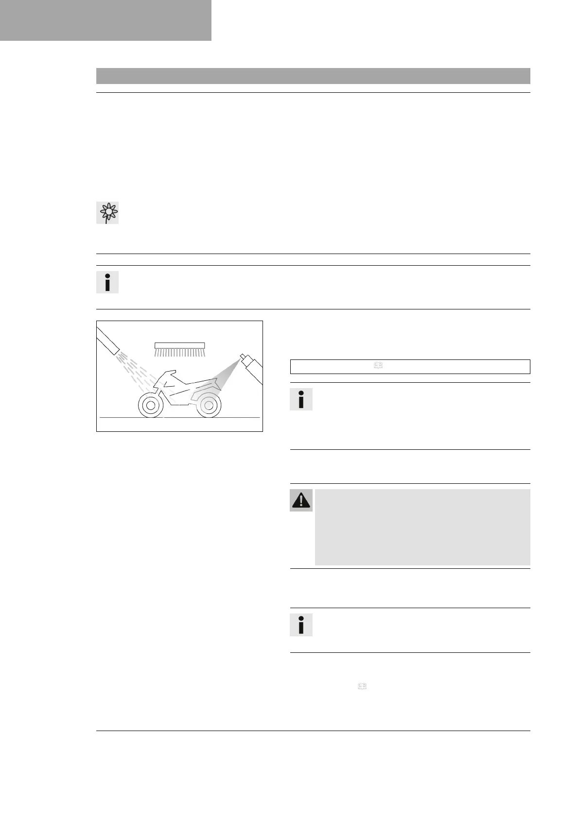 – Do not direct the water jet directly on to electrical components, connectors, throttle cables or bearings.