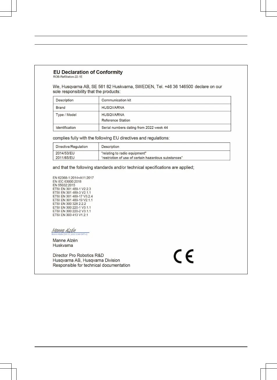 Husqvarna EPOS Reference station - Verklaring van overeenstemming; Originele EU-verklaring van overeenstemming