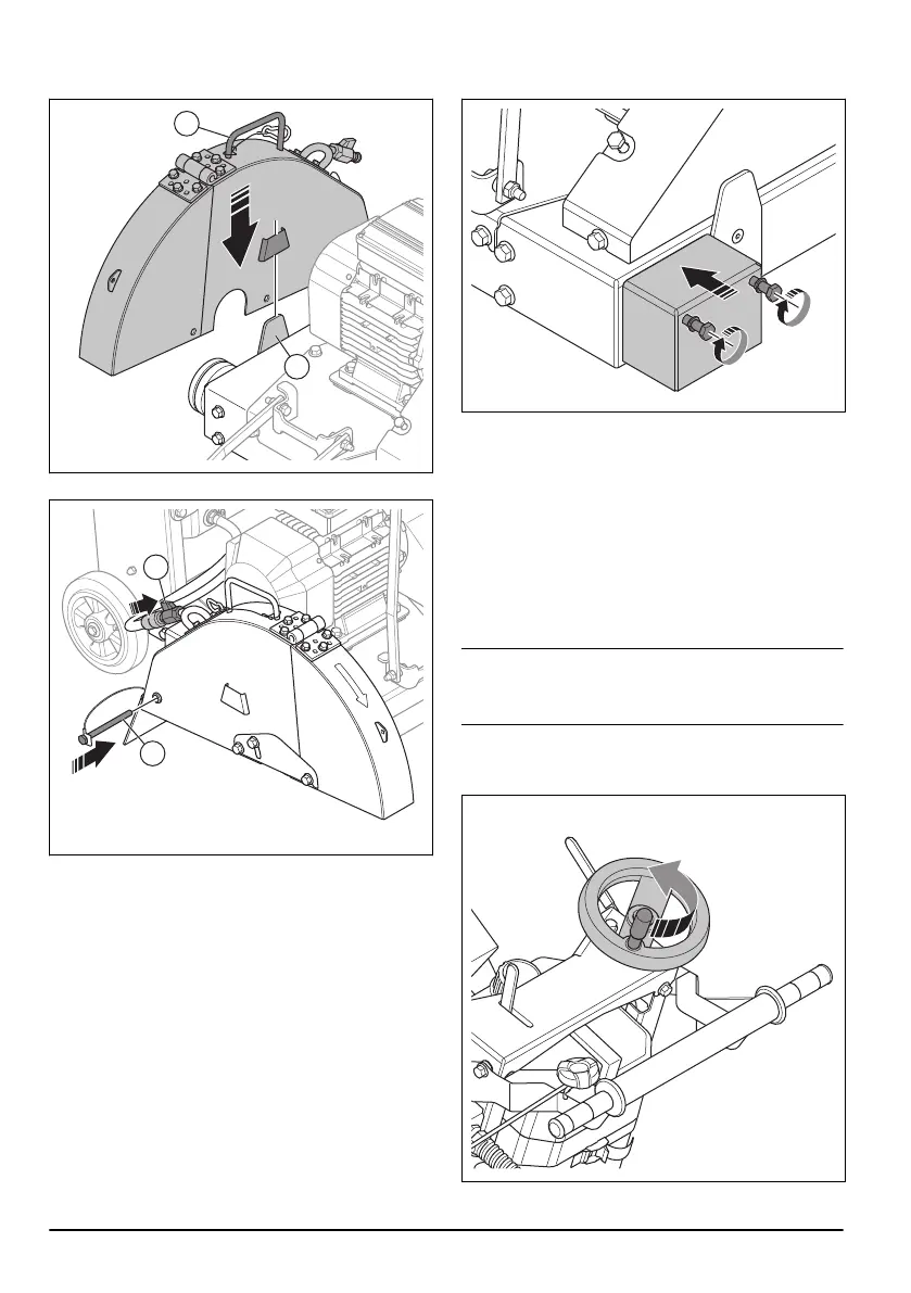 3. Use the handle (D) to lift the blade guard and install