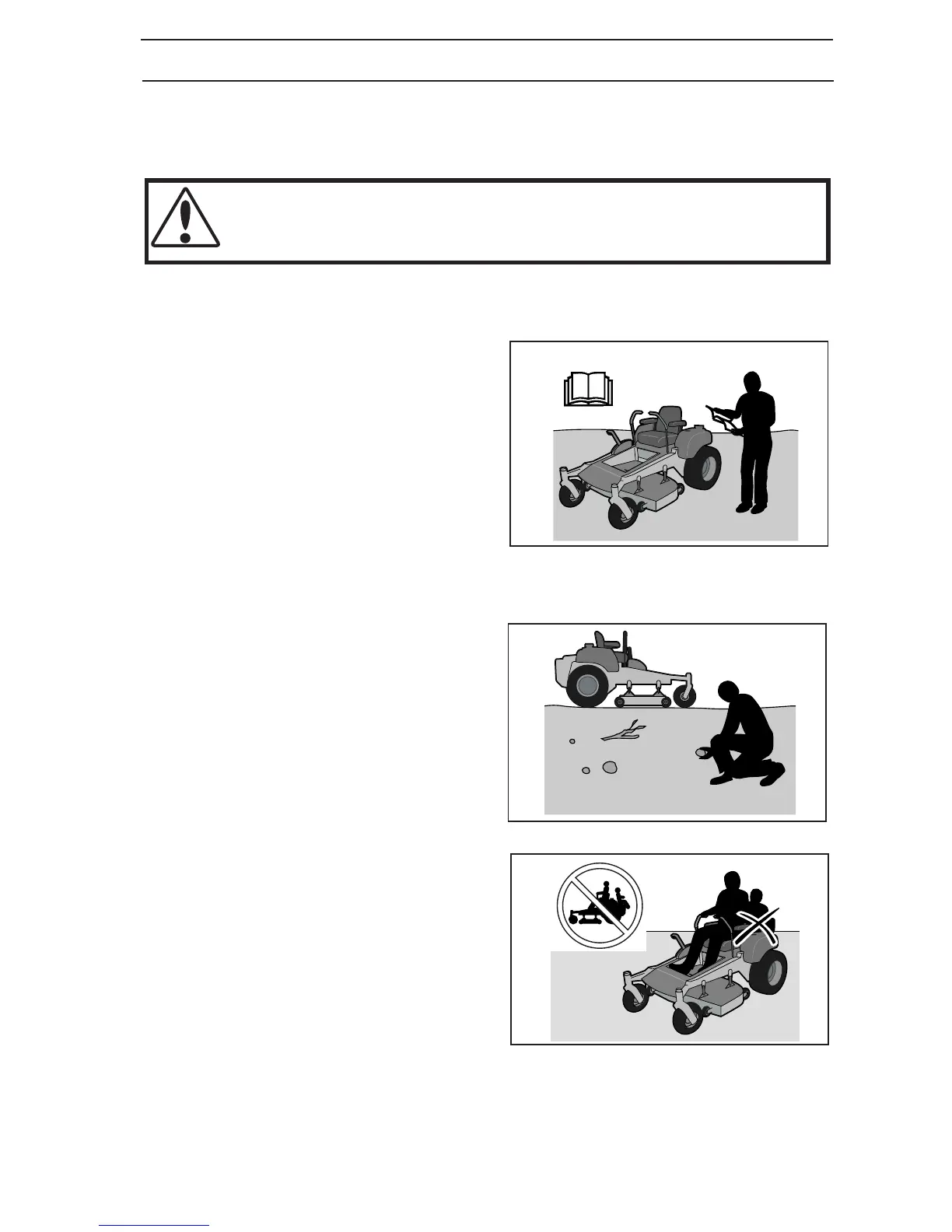 • Do not mow in reverse unless absolutely