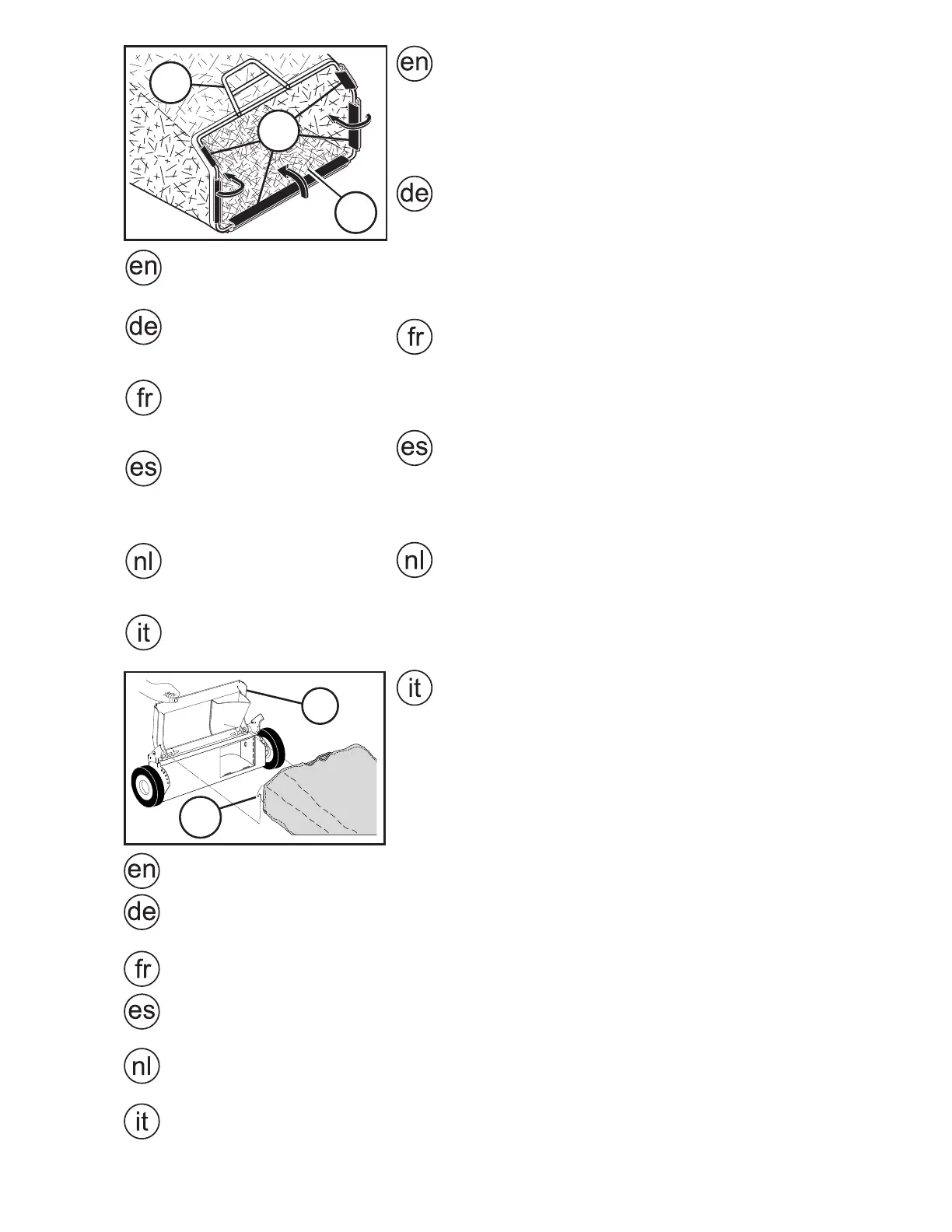 • Put grass catcher frame into grass bag with stiff part