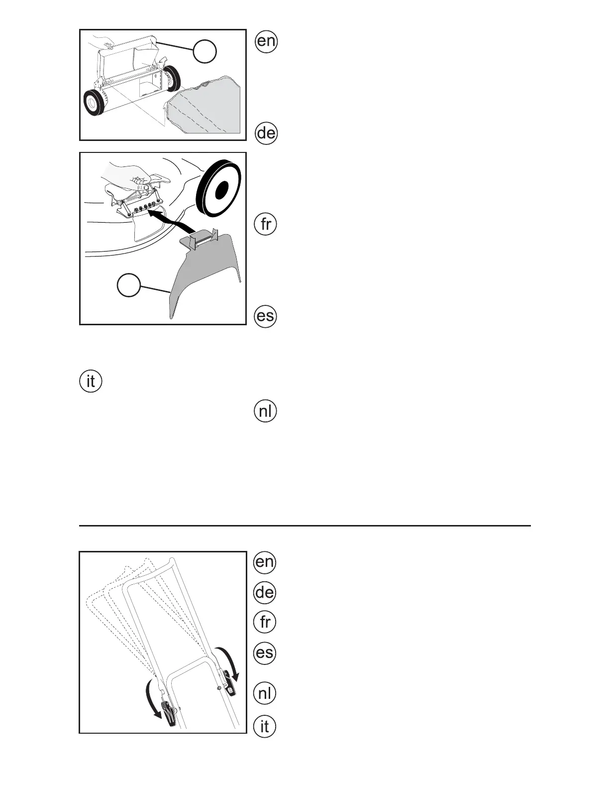 De hendel kan op verschillende maaihoogtes ingesteld.