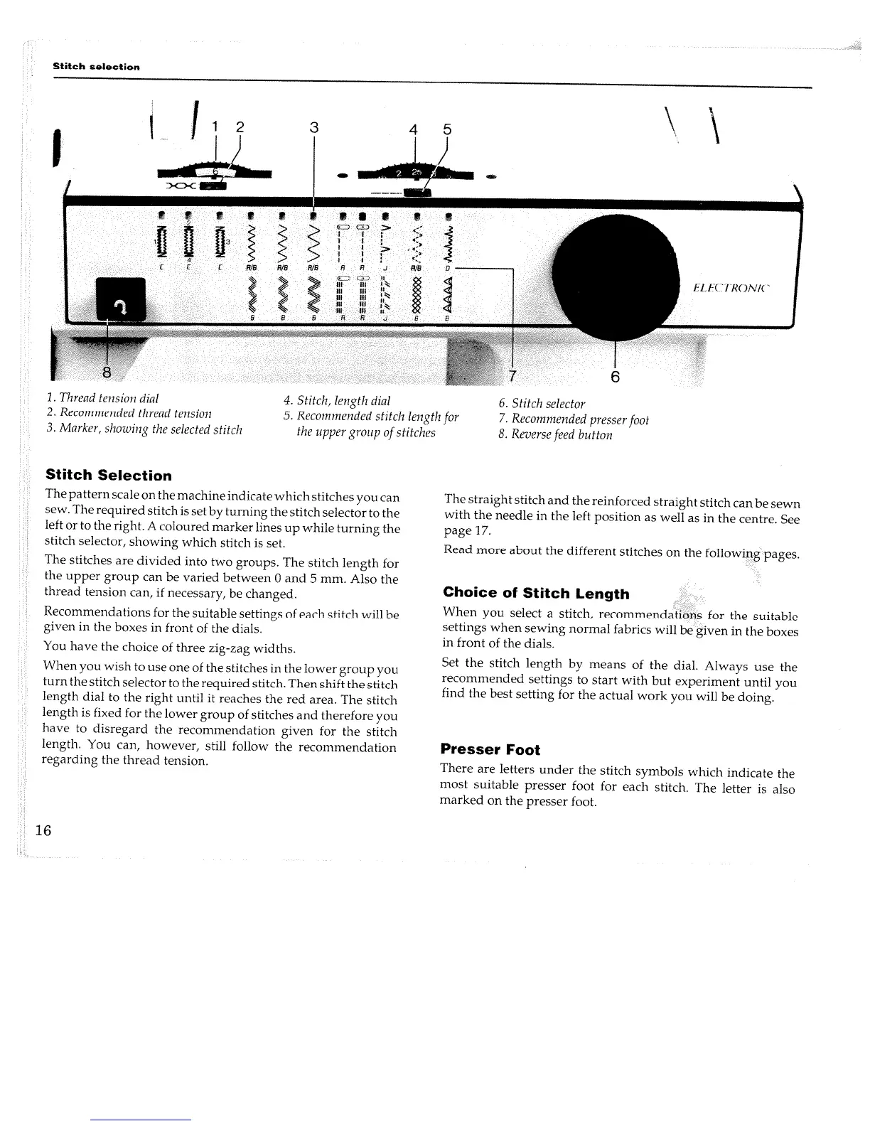 Husqvarna Optima 150 E - Stitch Selection and Settings; Selecting Stitches and Widths; Adjusting Stitch Length and Presser Feet