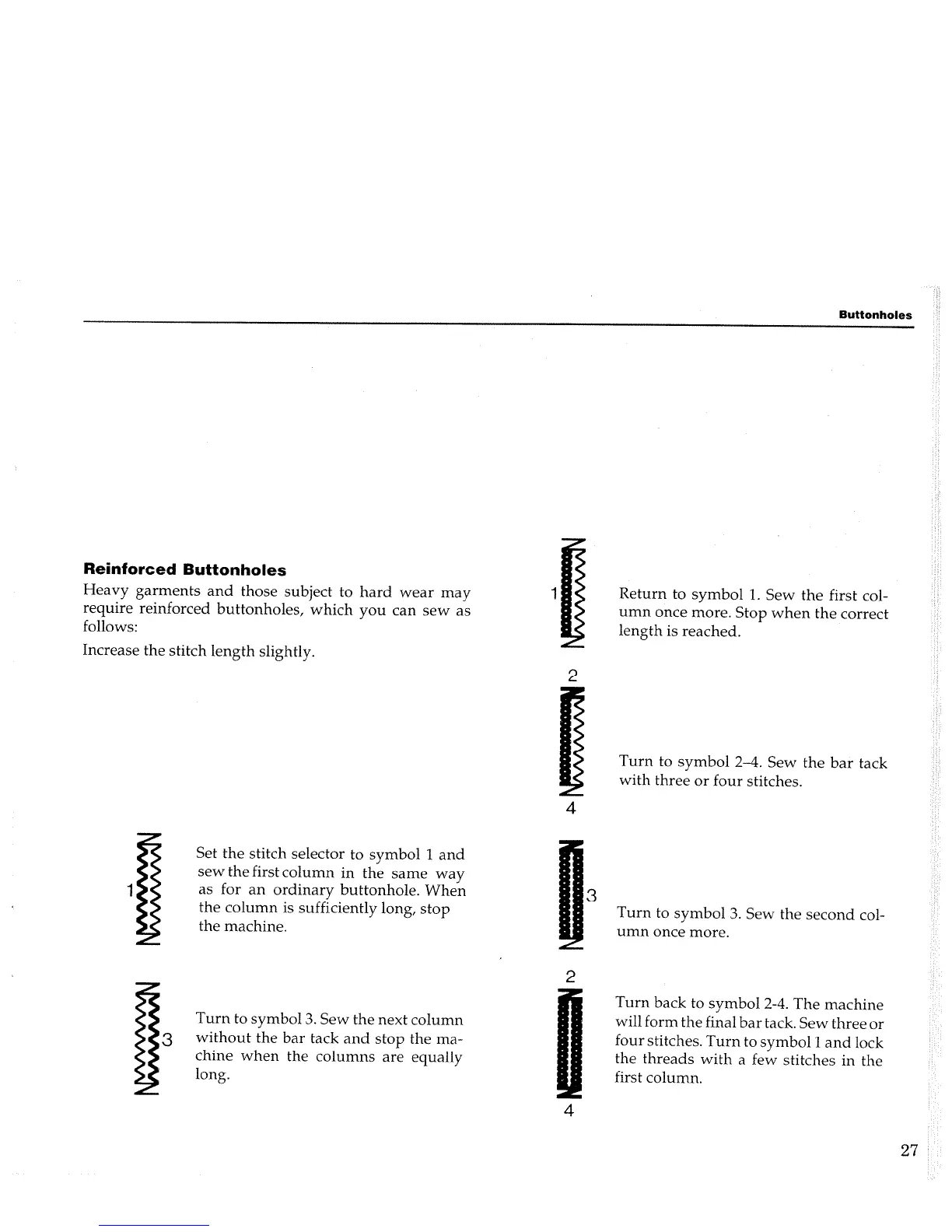 Husqvarna Optima 150 E - Advanced Buttonhole Techniques; Sewing Reinforced Buttonholes