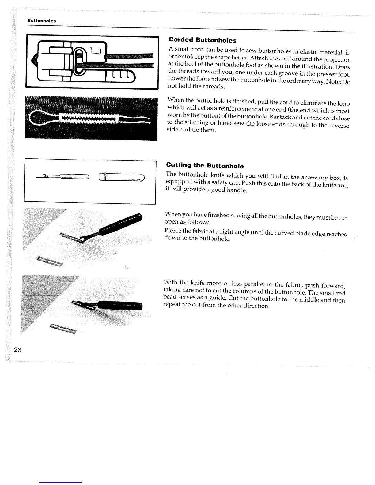 Husqvarna Optima 150 E - Special Buttonhole Features; Corded Buttonholes and Cutting