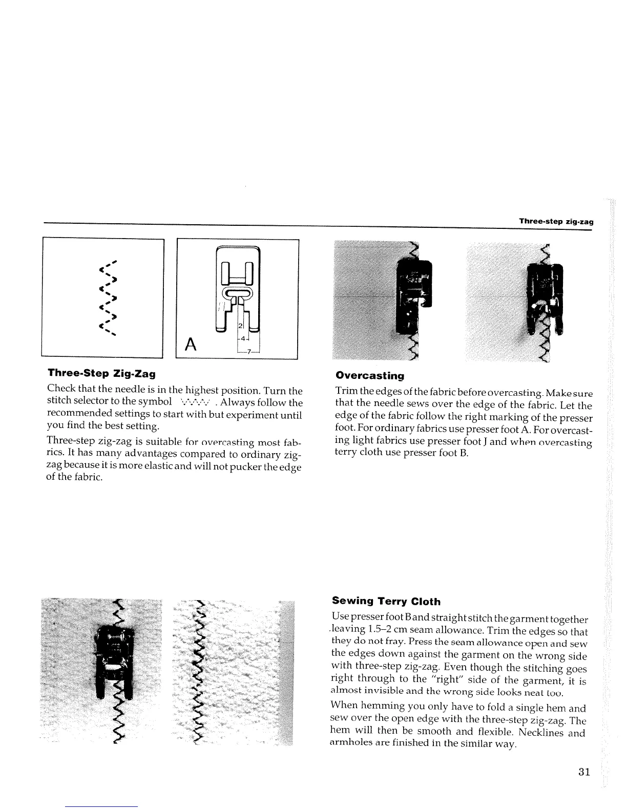Husqvarna Optima 150 E - Three-Step Zig-Zag Stitch; Overcasting and Fabric Edge Finishing; Sewing Terry Cloth and Hems