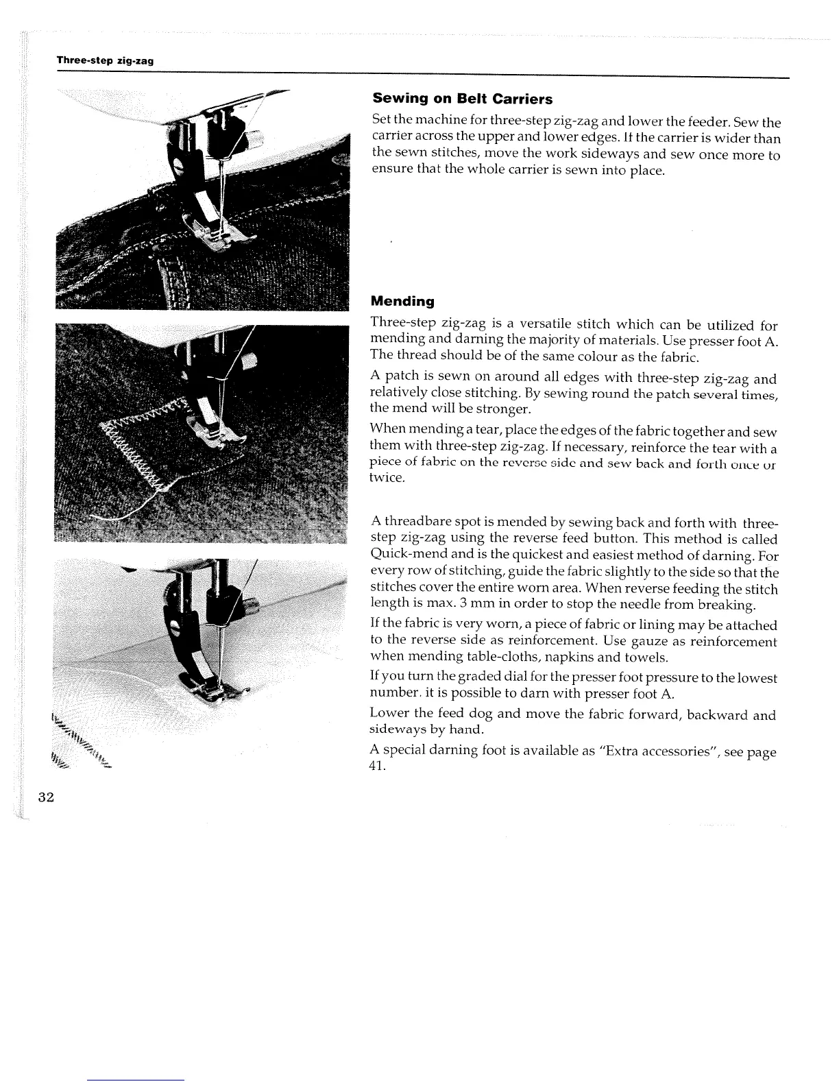 Husqvarna Optima 150 E - Three-Step Zig-Zag Applications; Sewing Belt Carriers and Mending