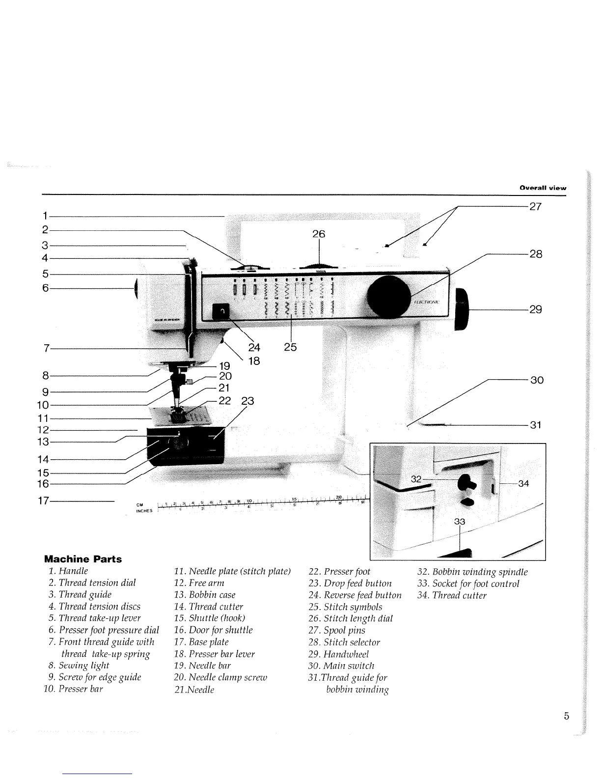 Husqvarna Optima 150 E - Machine Components Overview; Identification of Machine Parts