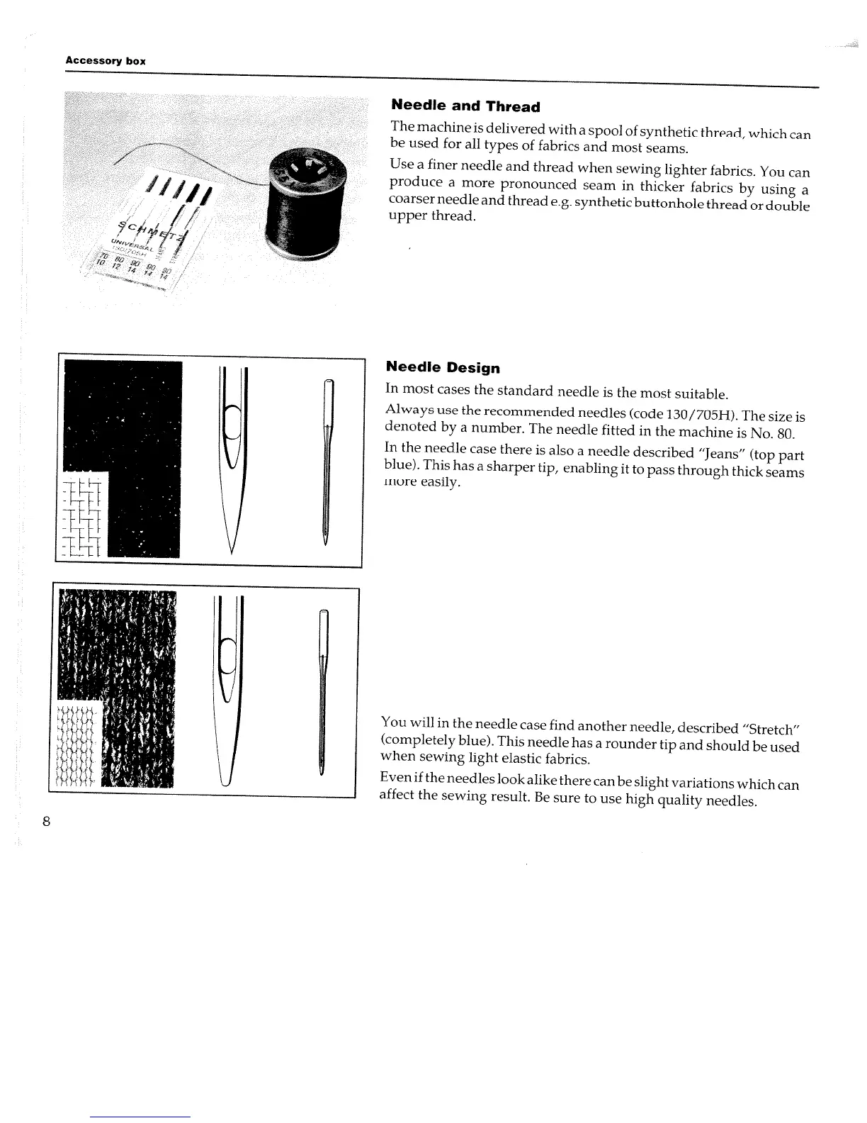 Husqvarna Optima 150 E - Needle and Thread Selection; Choosing the Right Needle and Thread