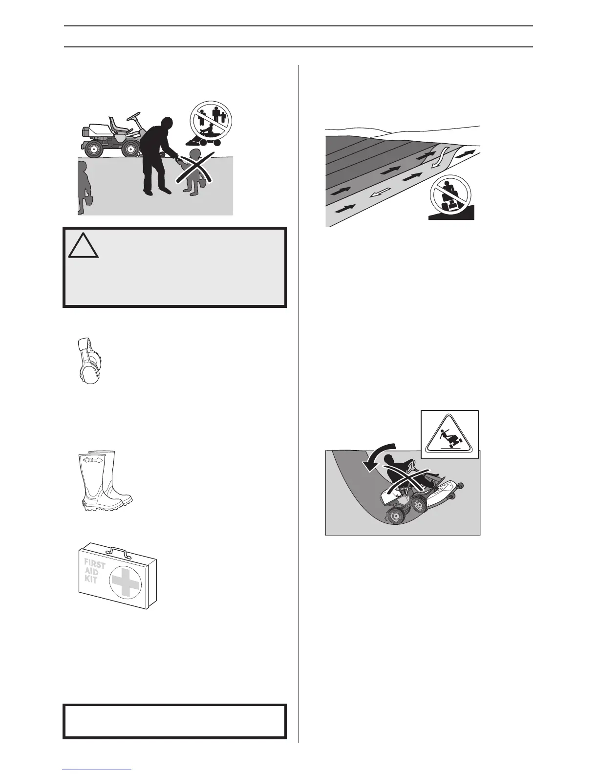 • Do not mow wet grass. It is slippery, and tyres can lose