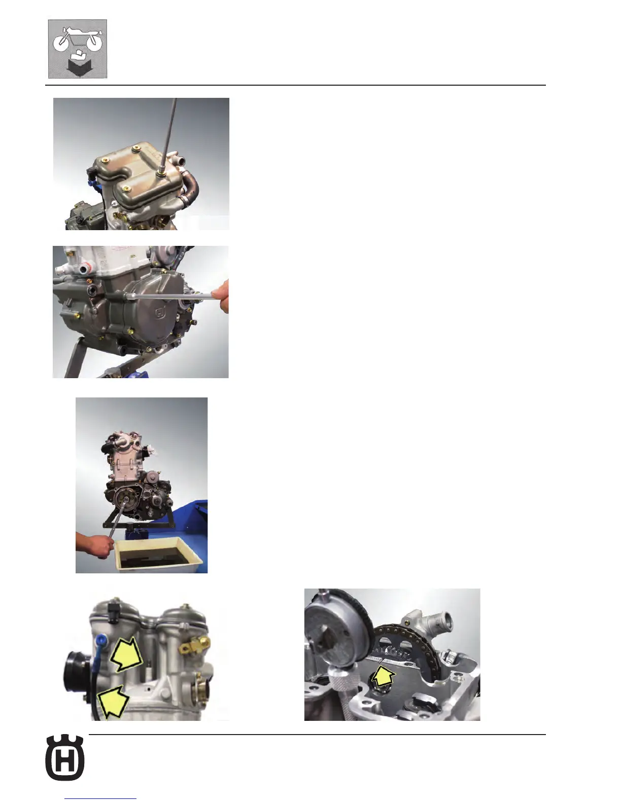 Remove the four fastening screws (8 mm wrench) and the cylinder head cover