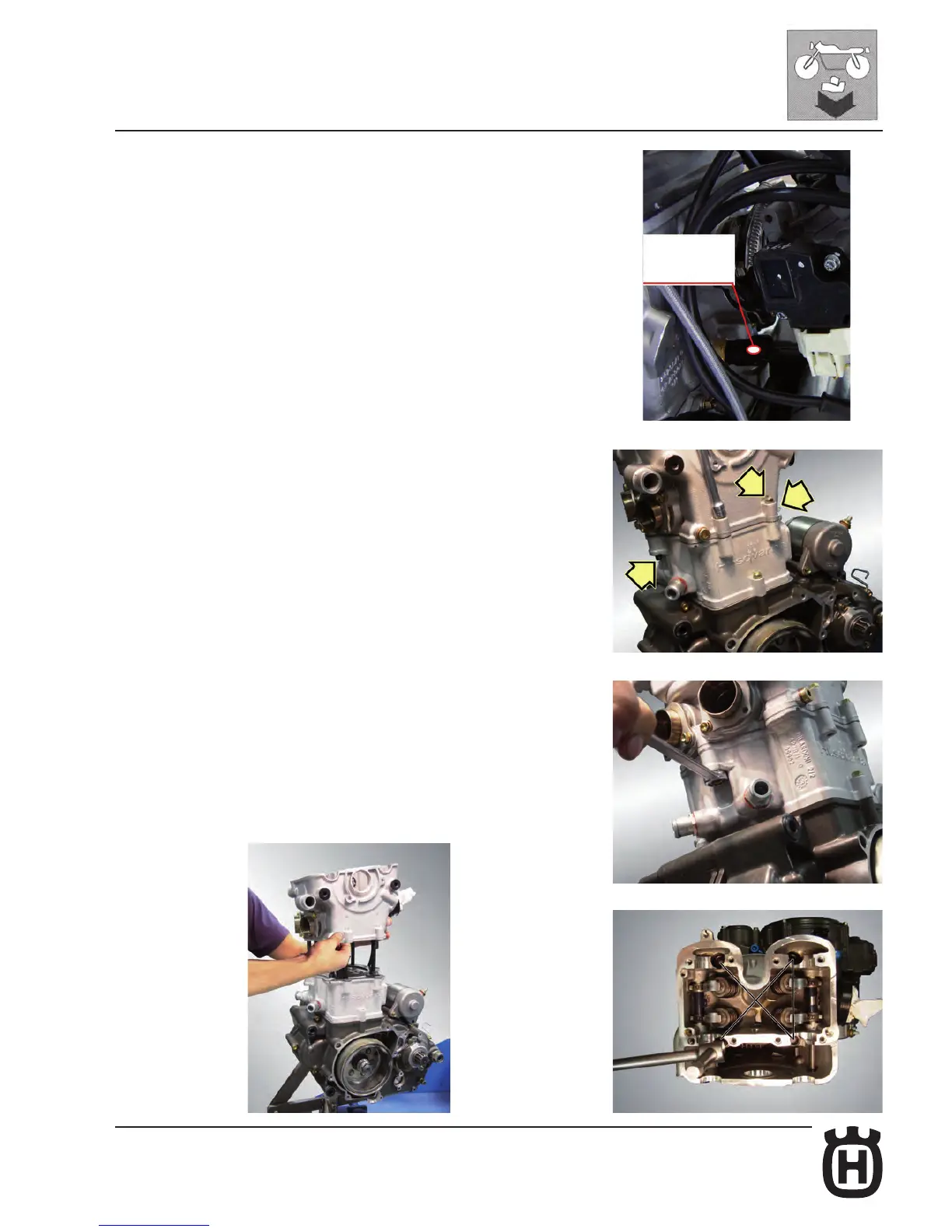 Remove the four inner screws on the cylinder head (10 mm wrench) whilst fol-