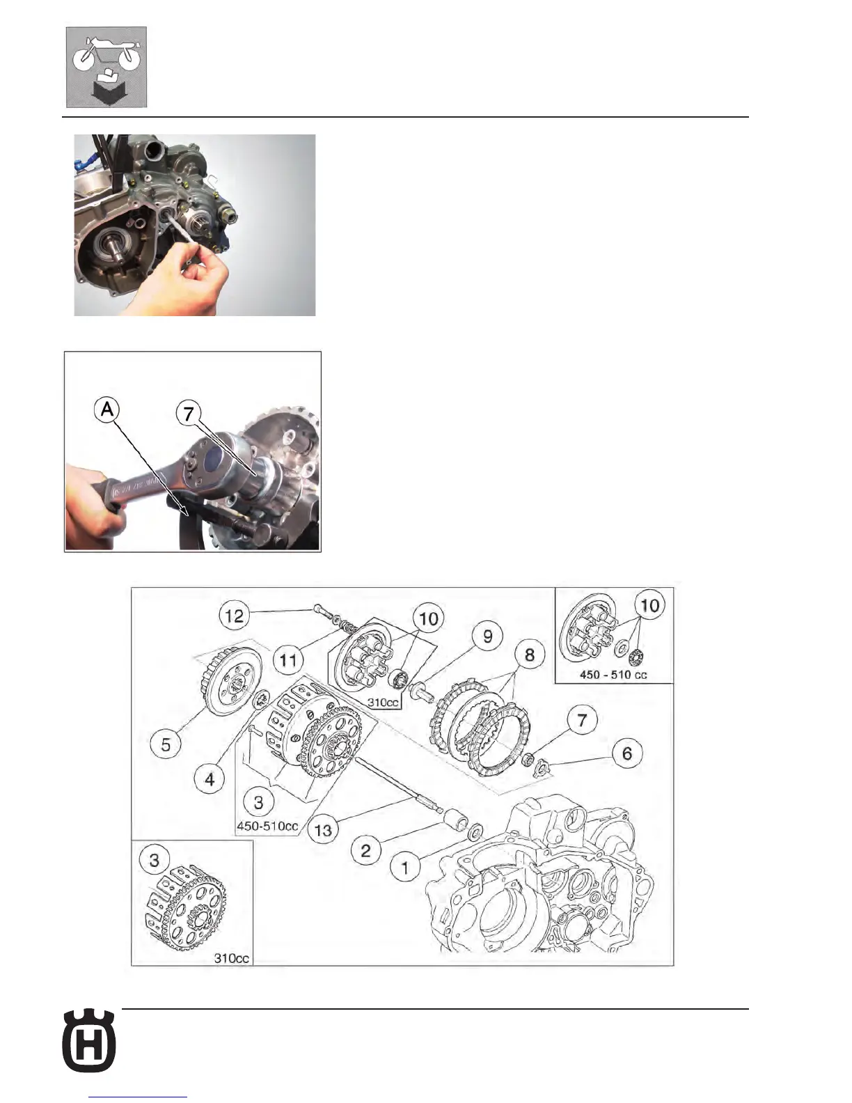 wrench), remove the nut (7) using the clutch disassembly tool (A) (code no.
