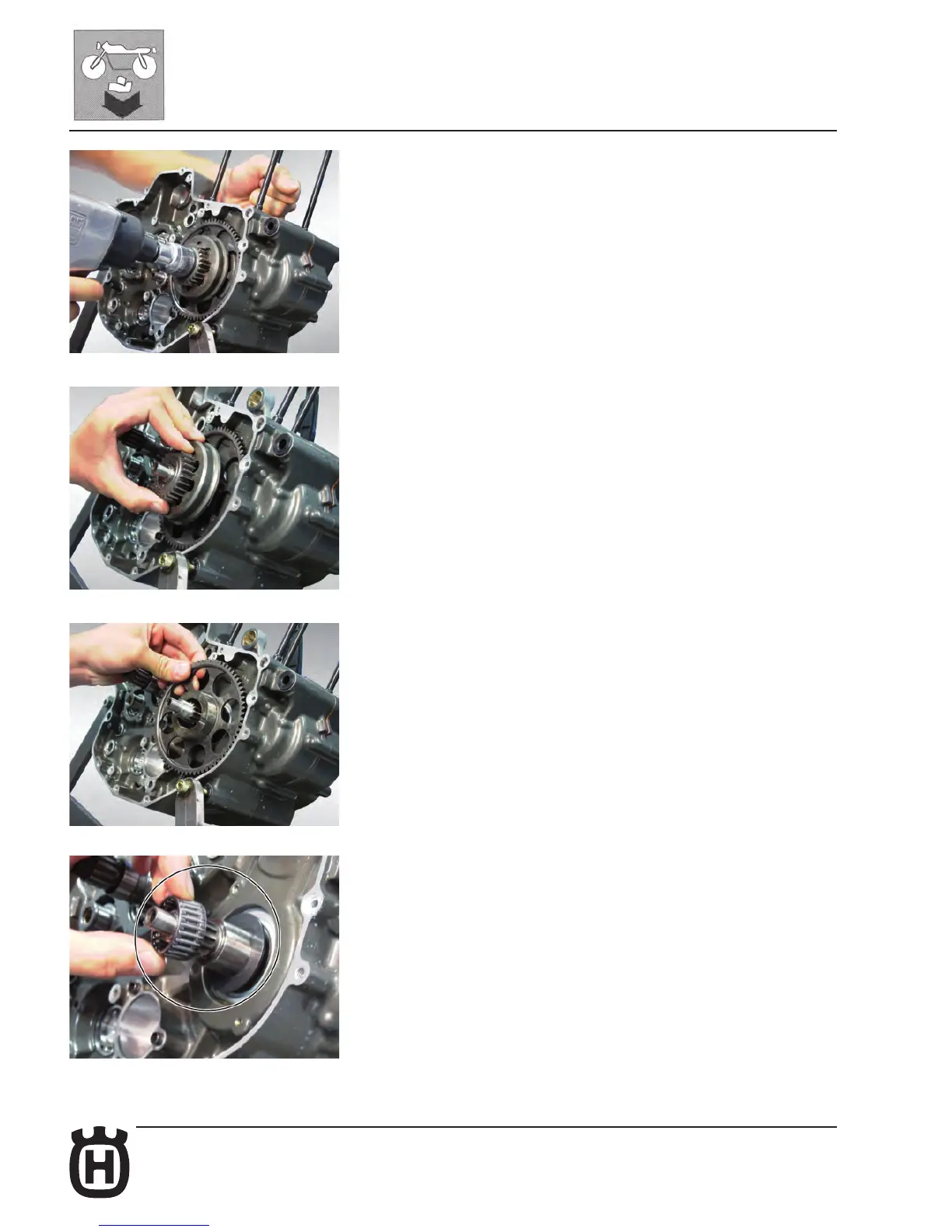 Remove the driving gear and the free-wheel (mark the reassembly direction),