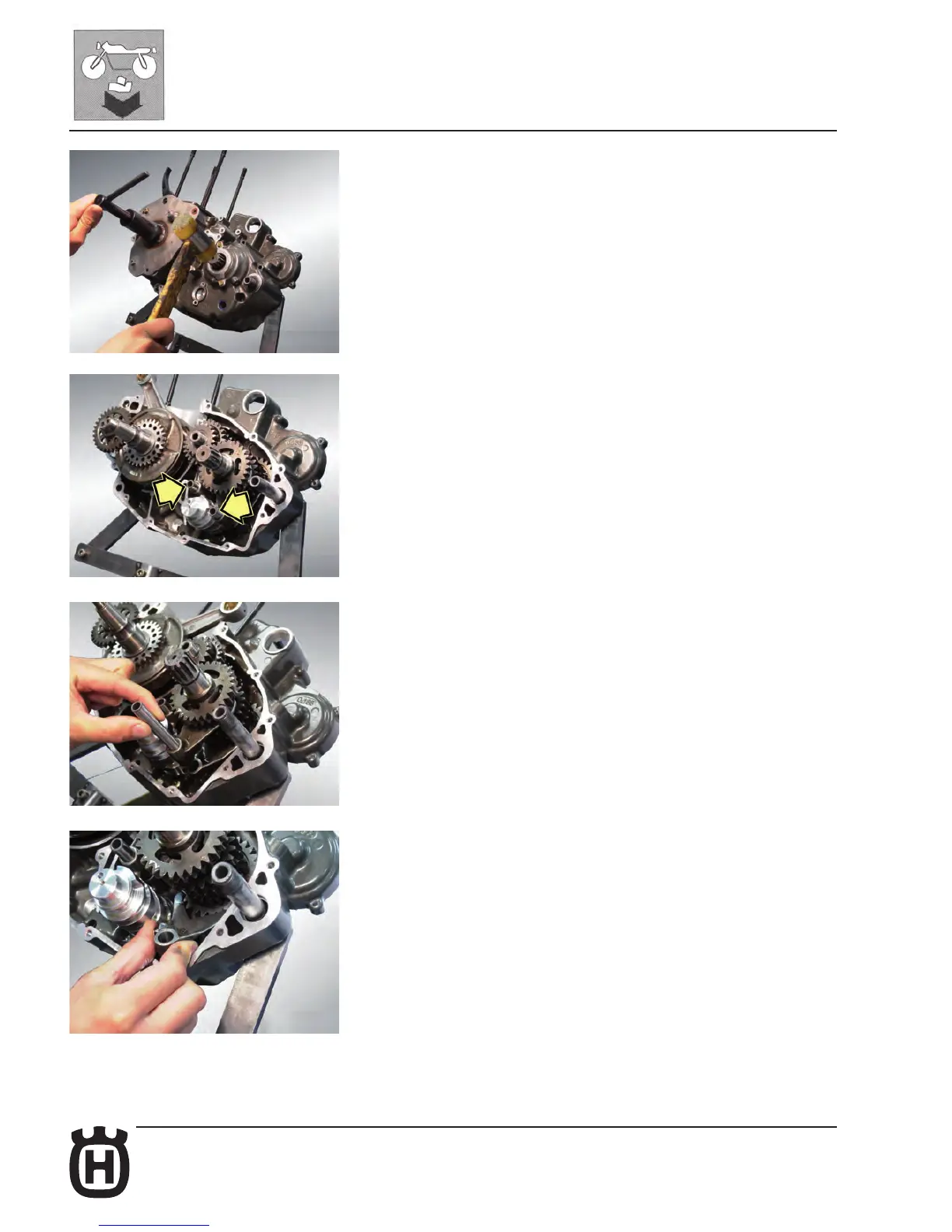 Remove the fork pins, the forks and the selector drum so they do not interfere with