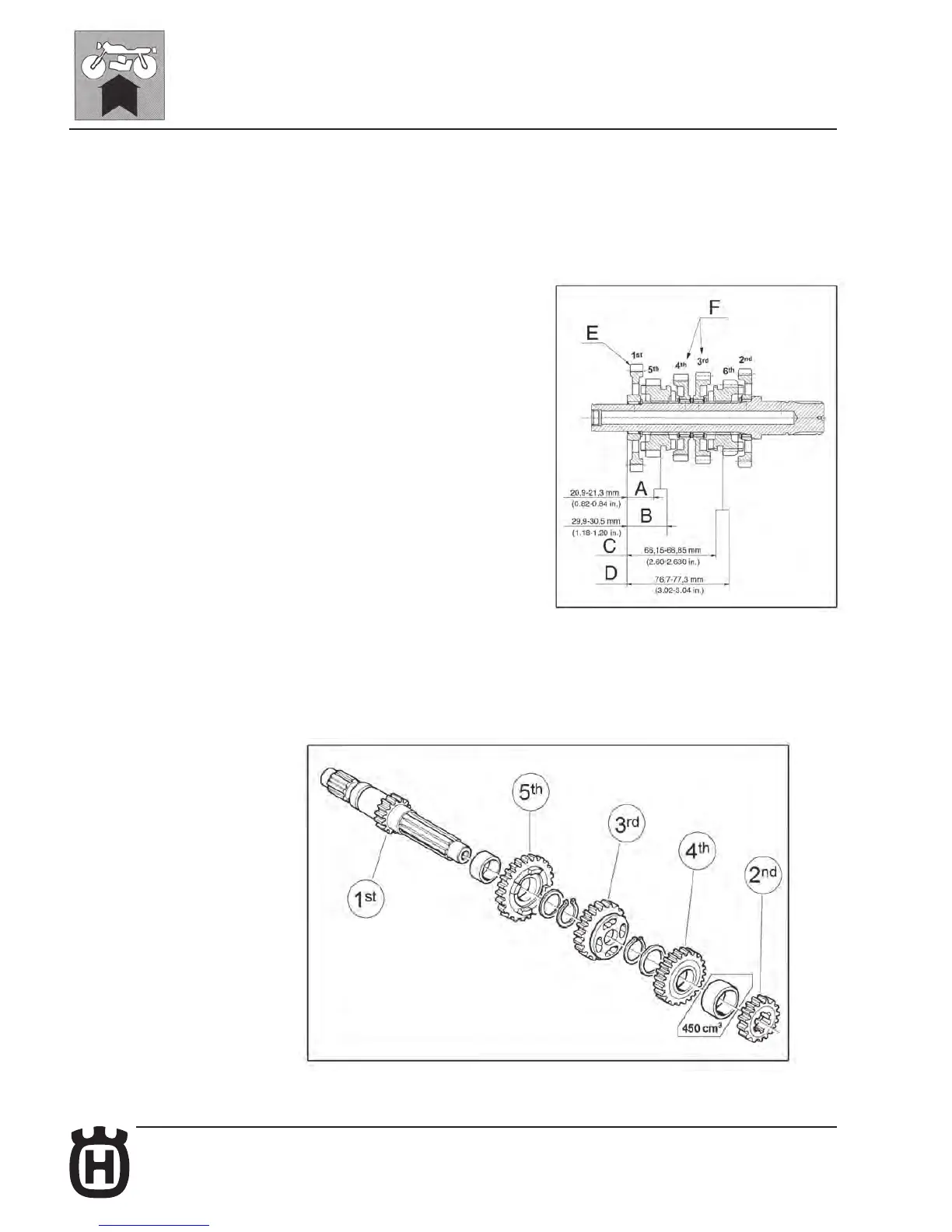plus” under 4th gear. Mount 5th gear and the washer. Mount the needle bearing, the 1st speed gear and the washer.