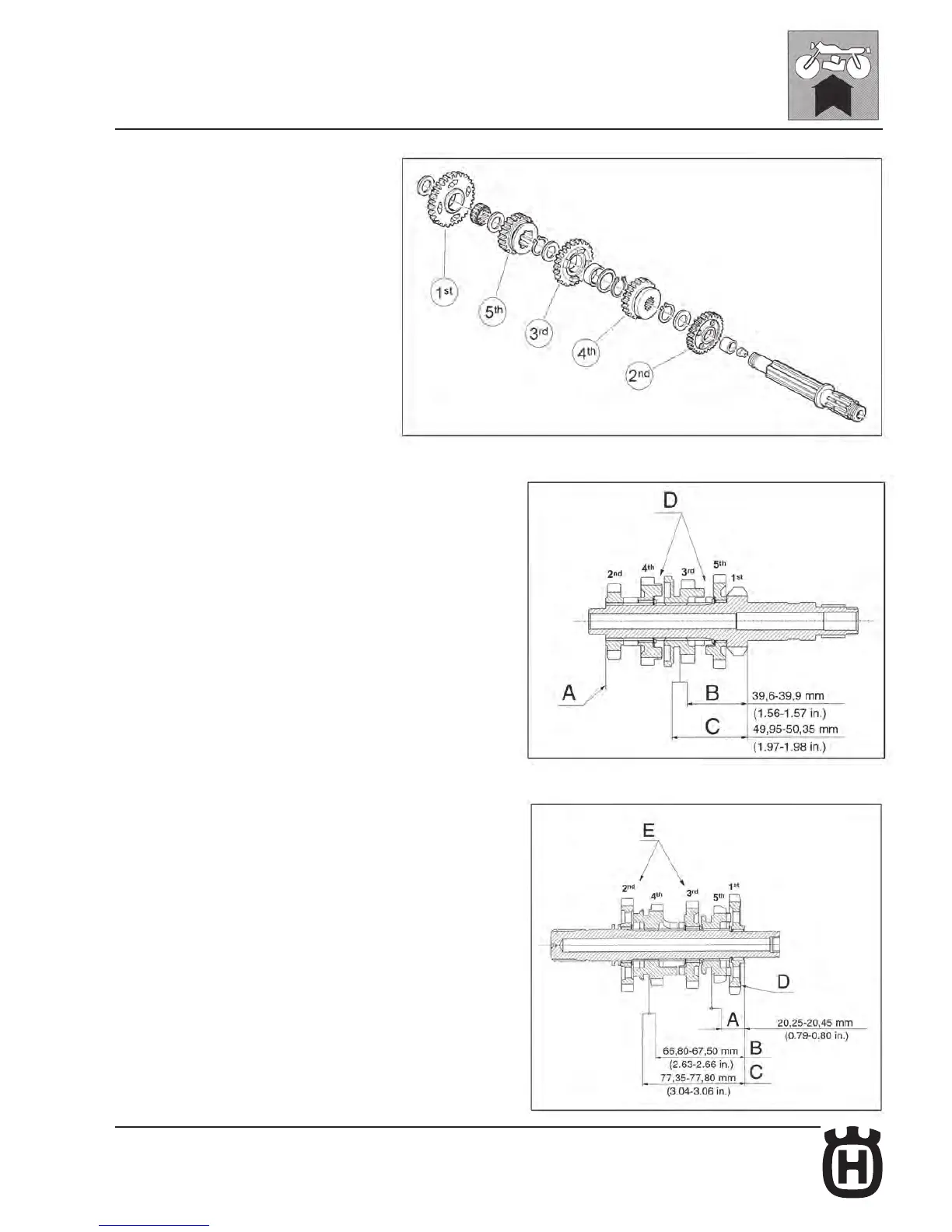 Mount the spacer (only for 450-510 cc). Mount 2nd gear.